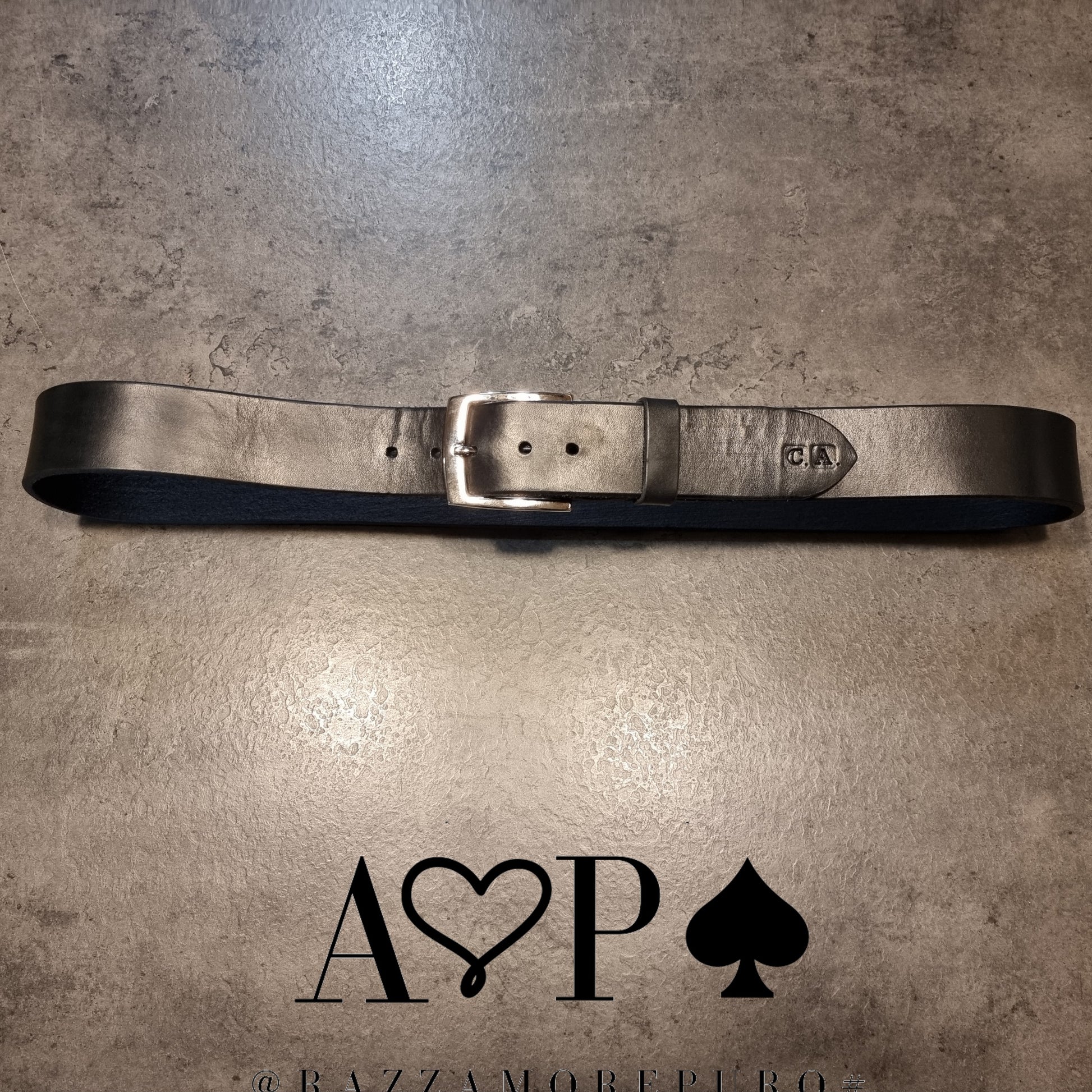 - Fibbia in materiale ottone, con galvanica color acciaio passo 3 o passo 3,5cm in base alla scelta