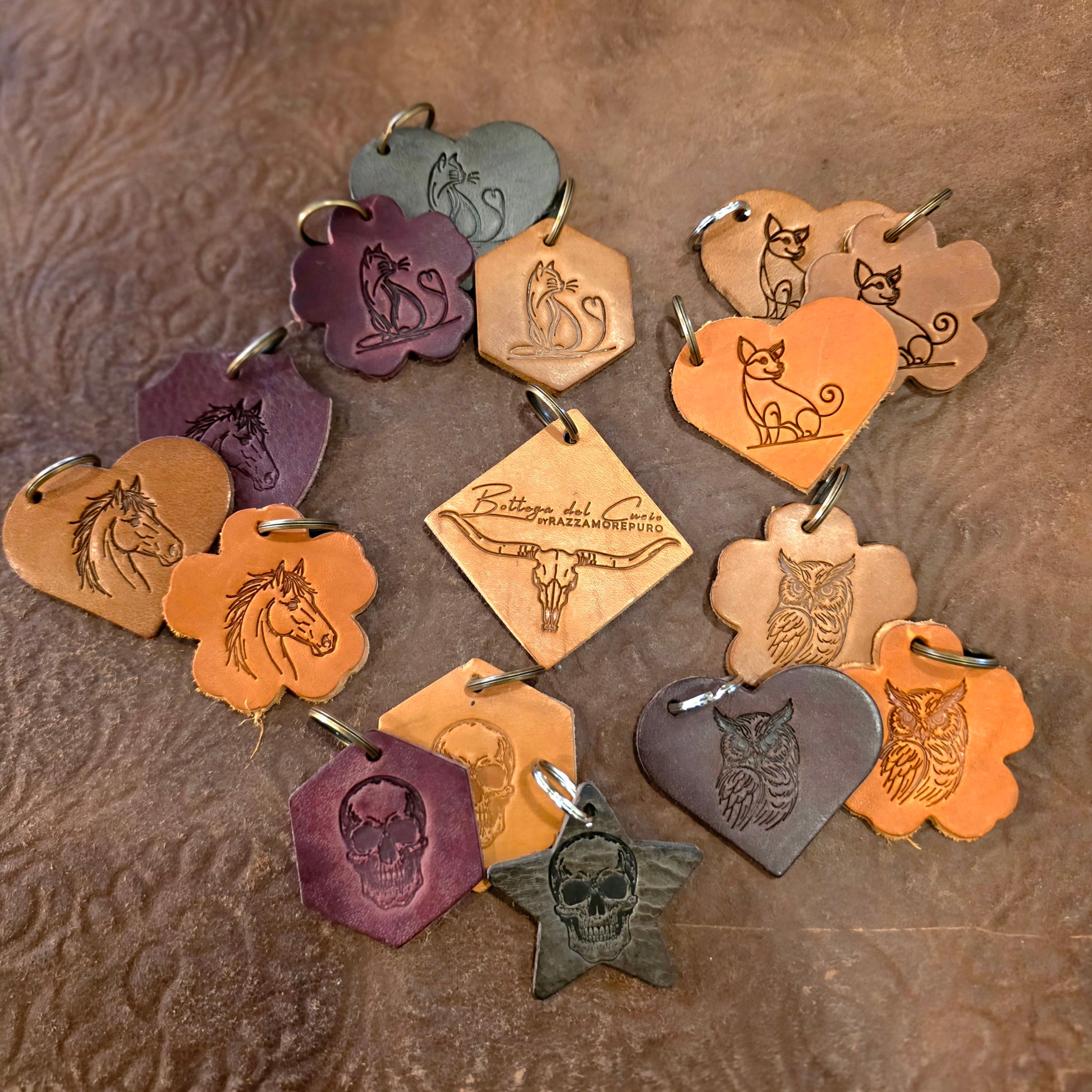 Round leather key ring (diameter approximately 2.5cm) with an engraved letter as in the photo