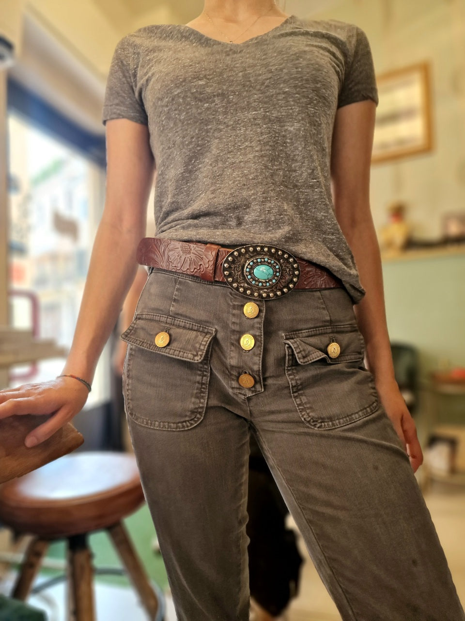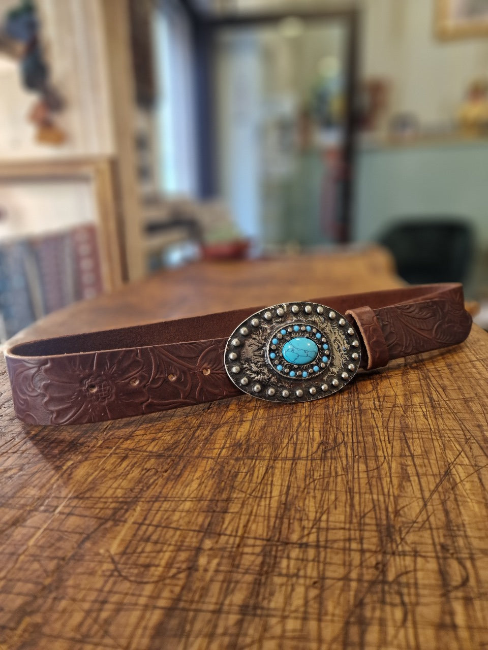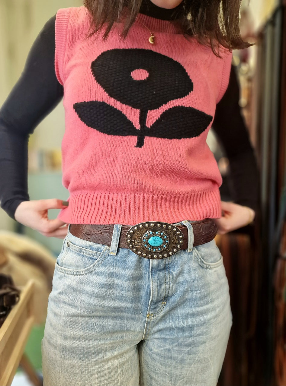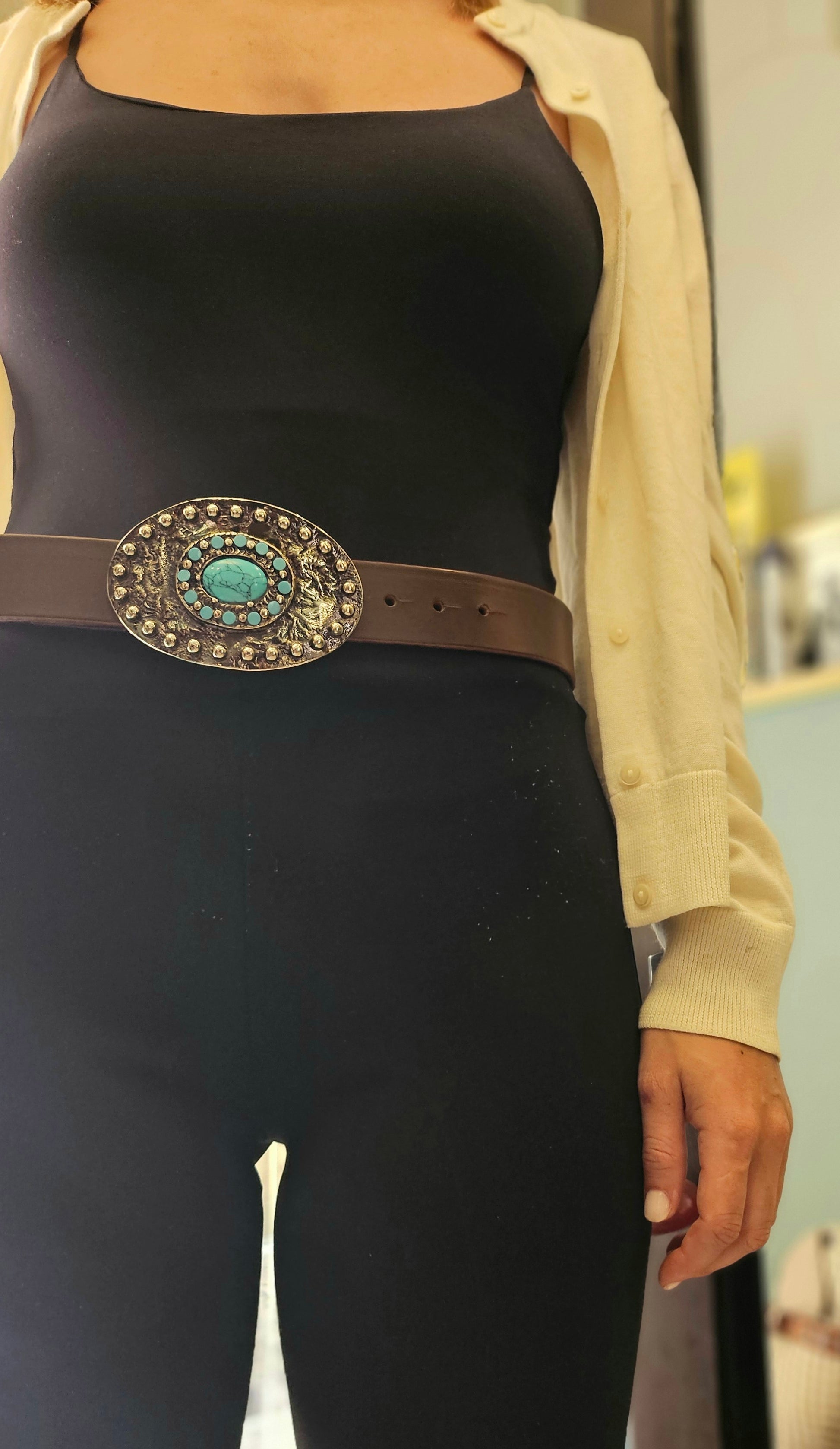 Bellissima cintura con placca in stile country-rock alta 3,5cm circa