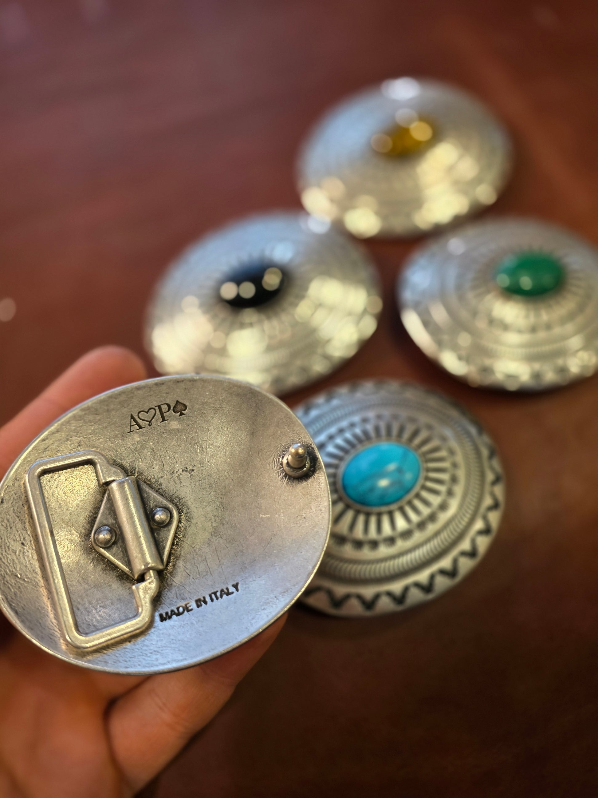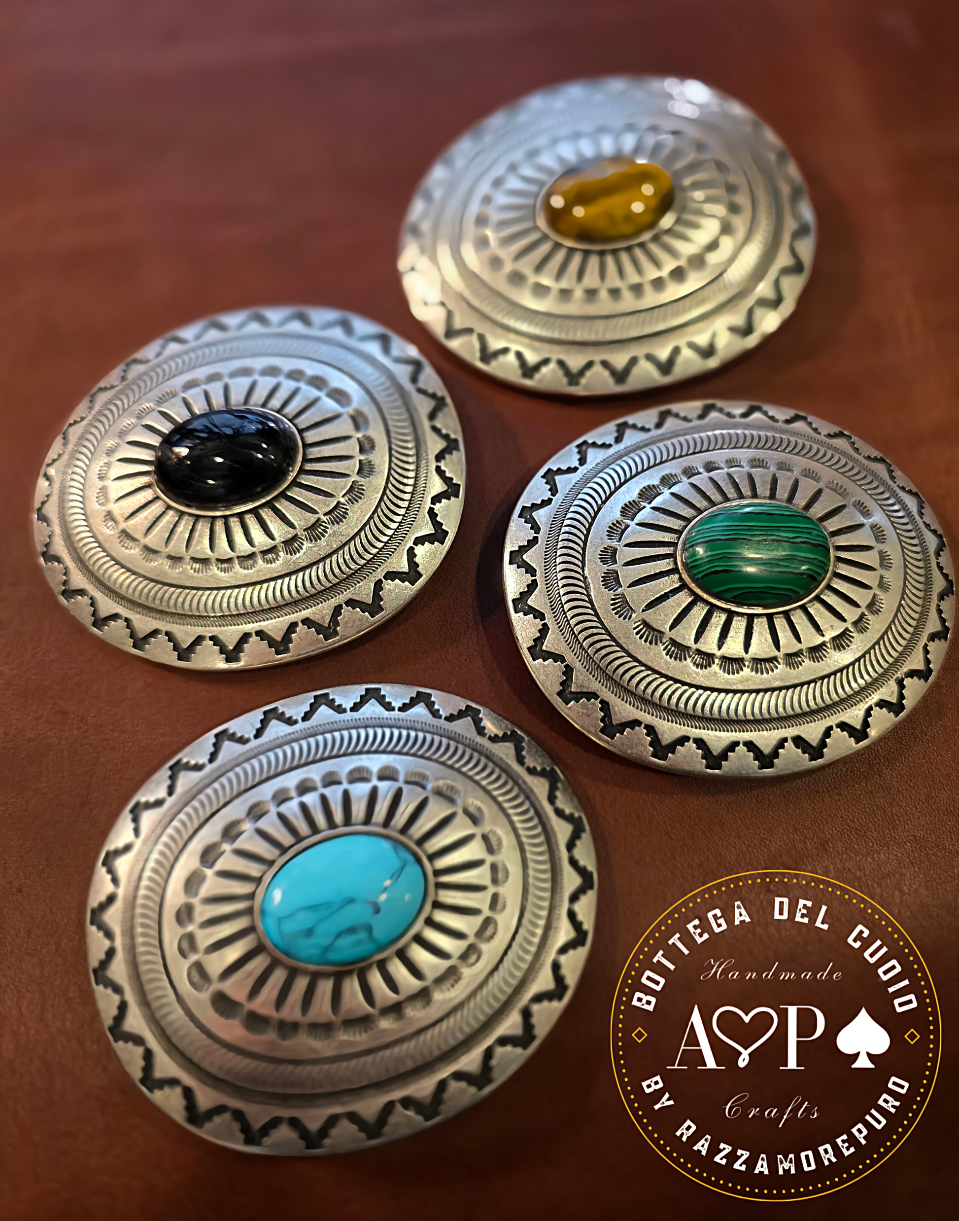 La placca/il cuoio sono intercambiabili grazie alla chiusura con bottoni a pressione come da tradizione country.