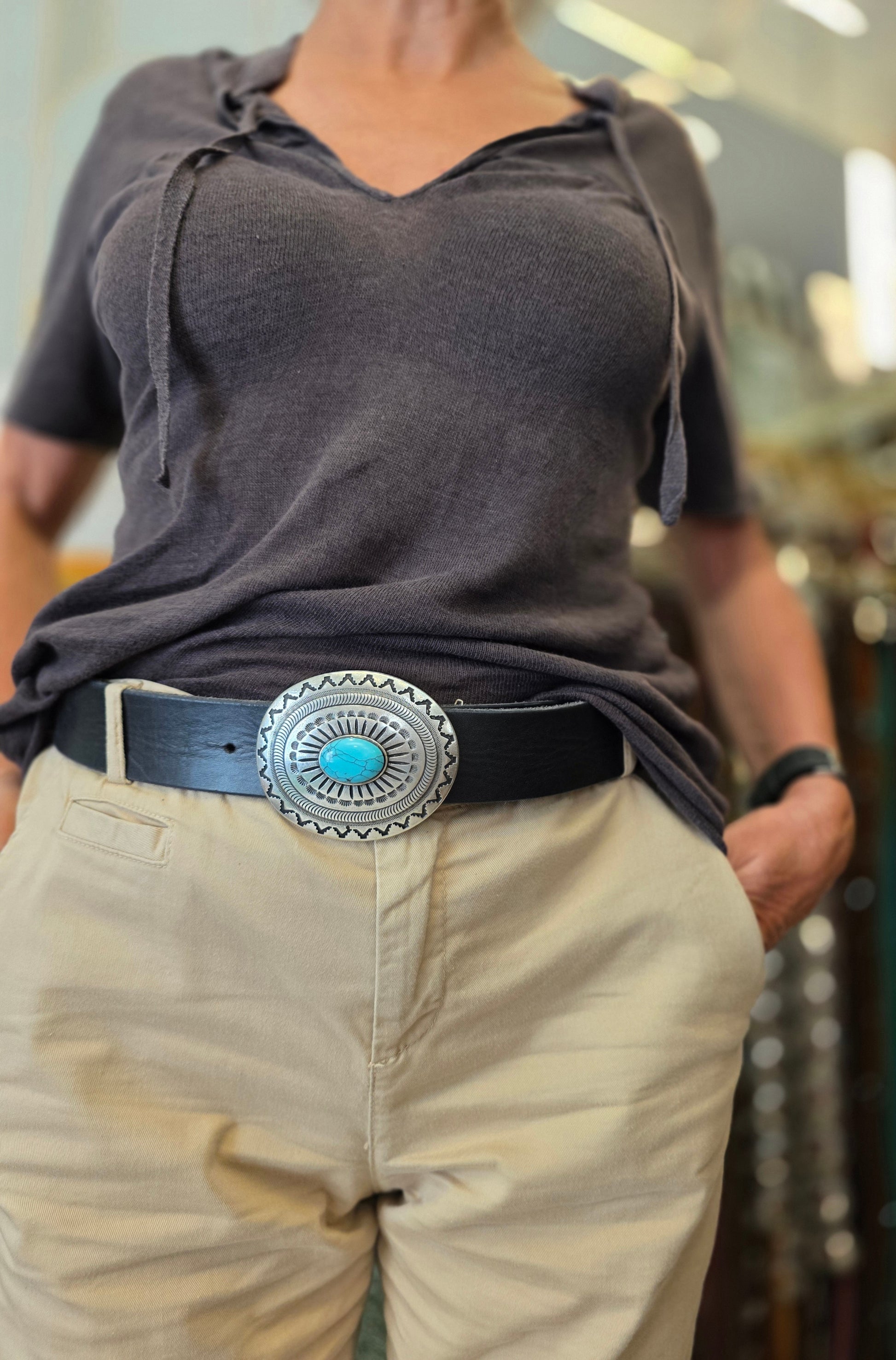 La nostra cintura con placca in stile country di ispirazione navajo