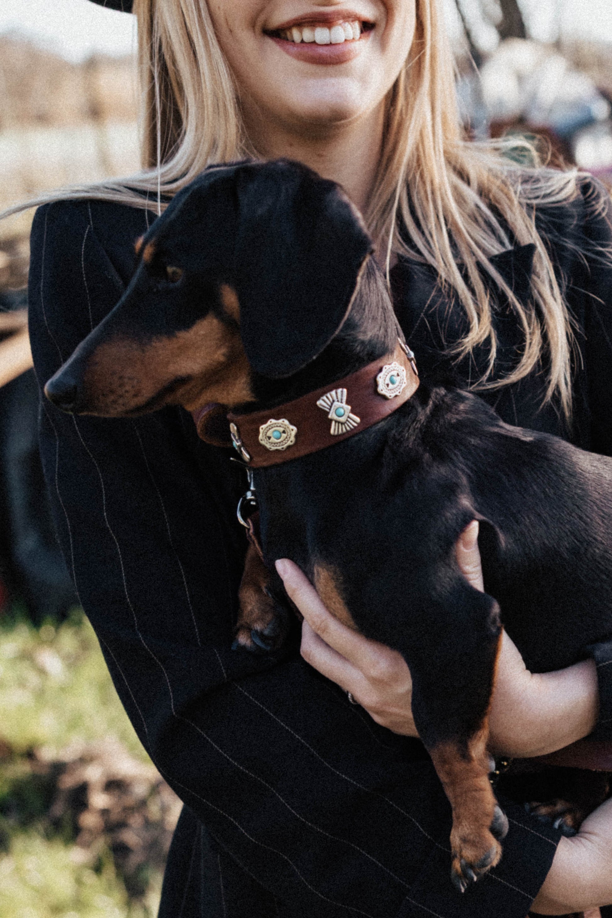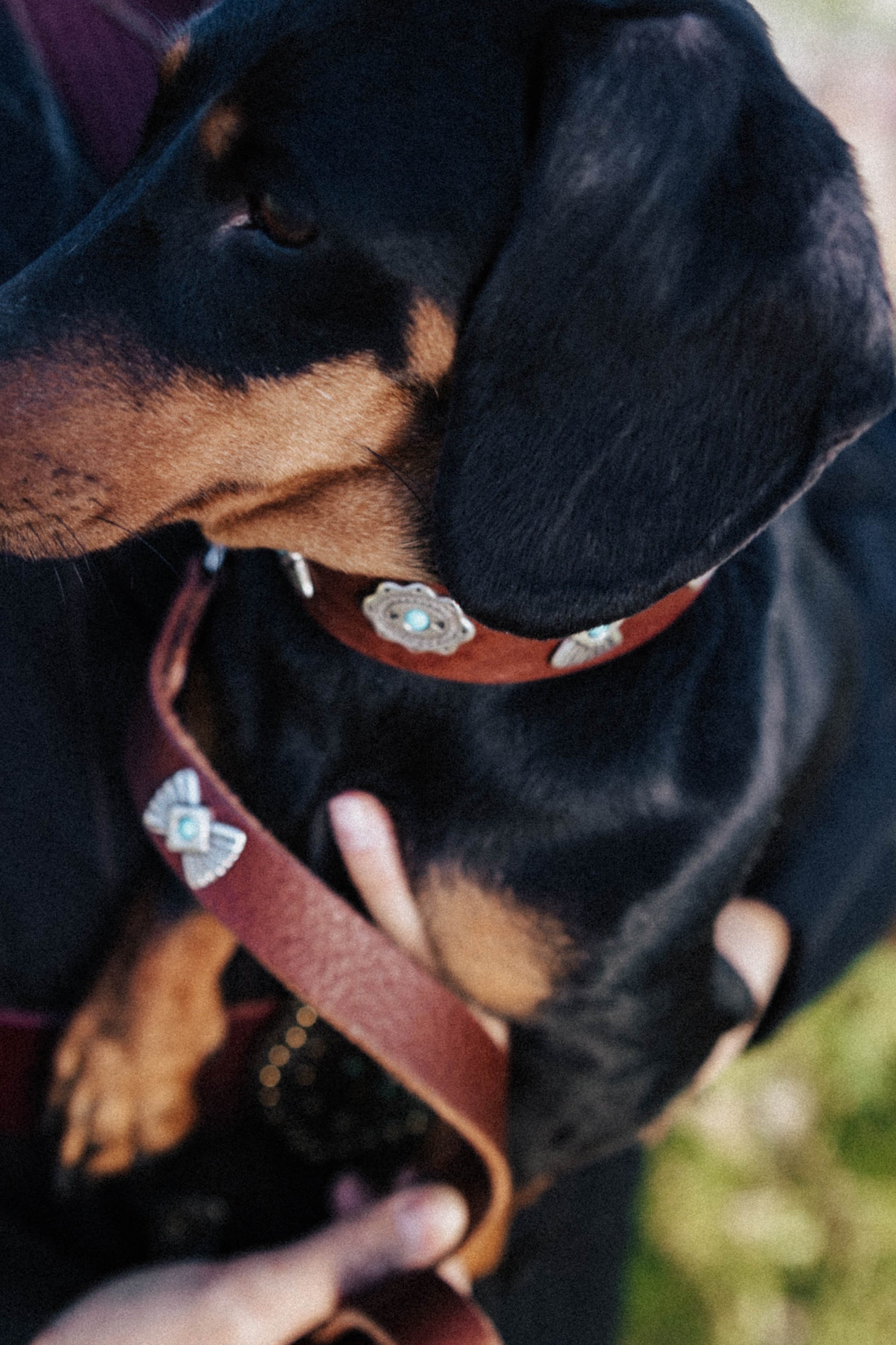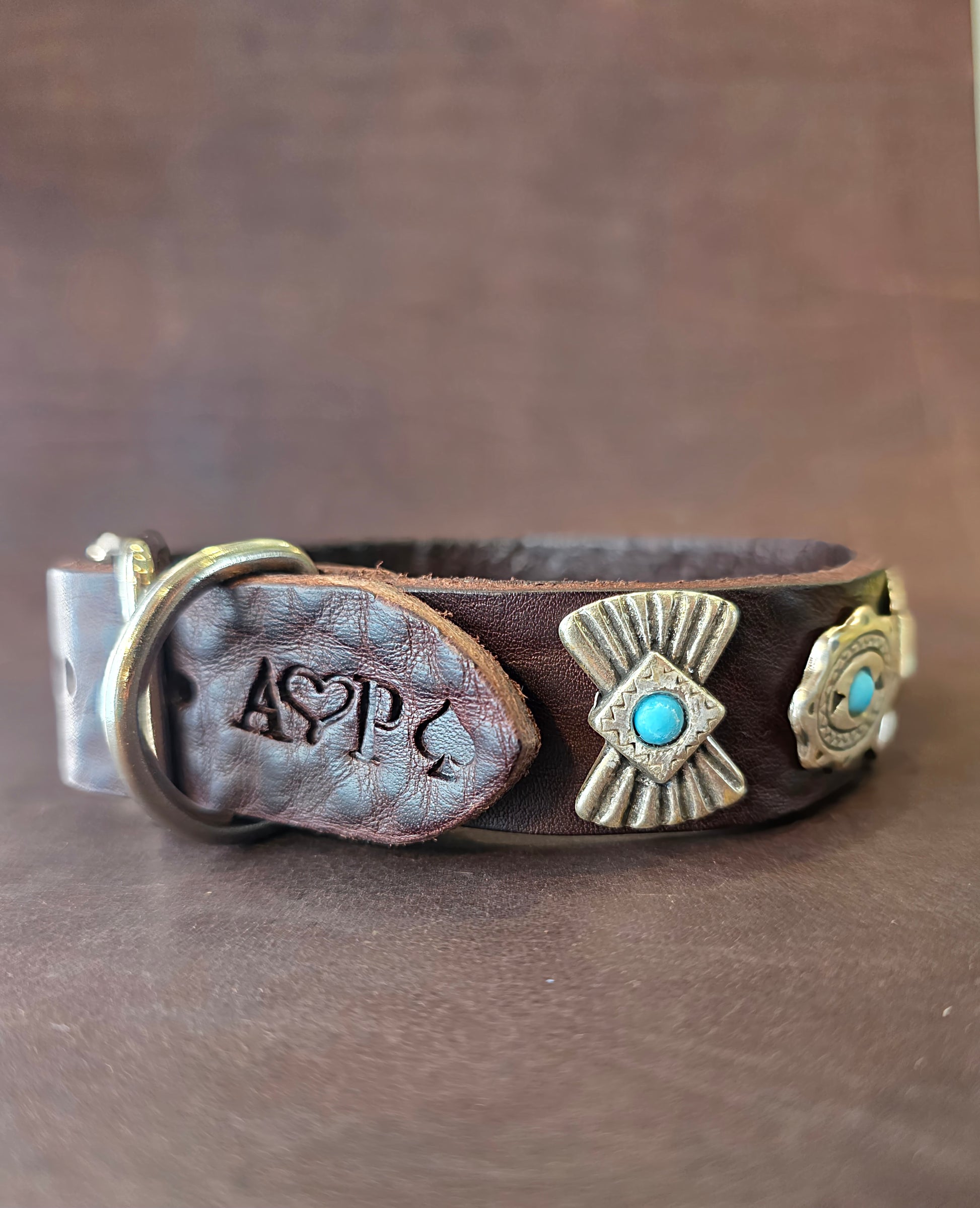 Collare in cuoio con bellissimi concho di ispirazione navajo alternati come da foto