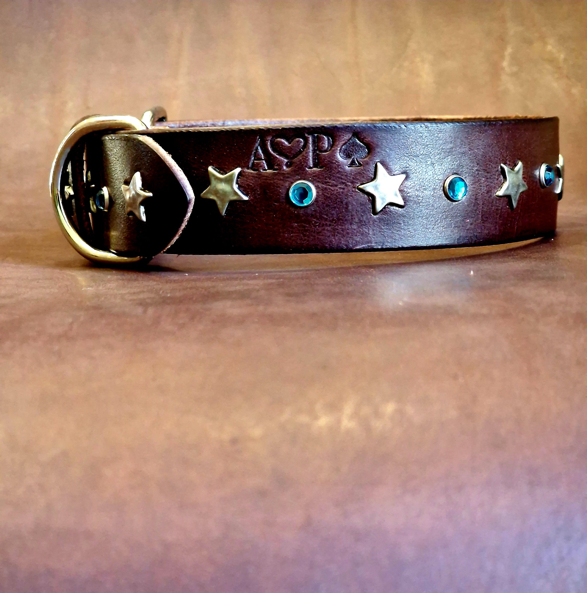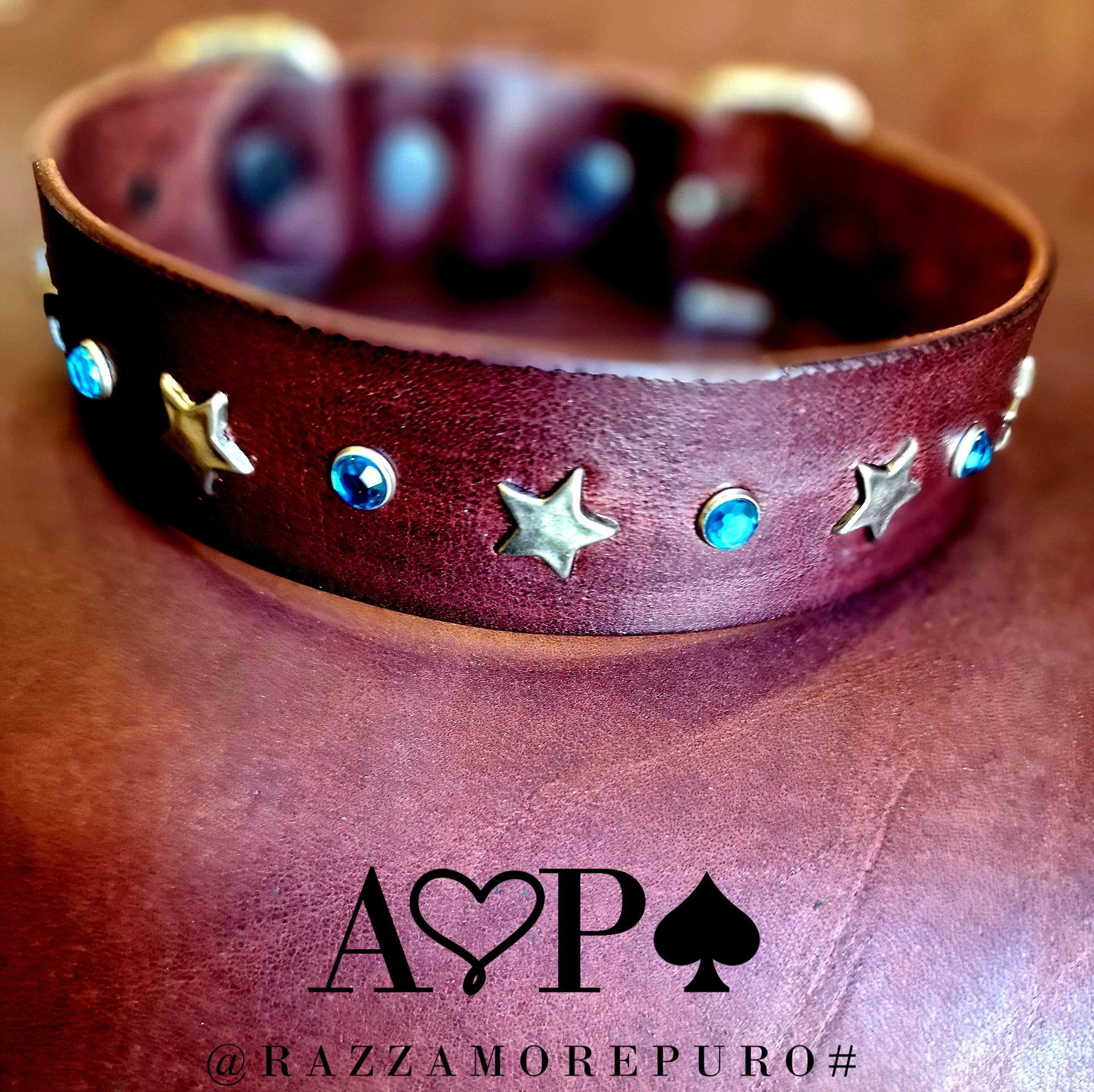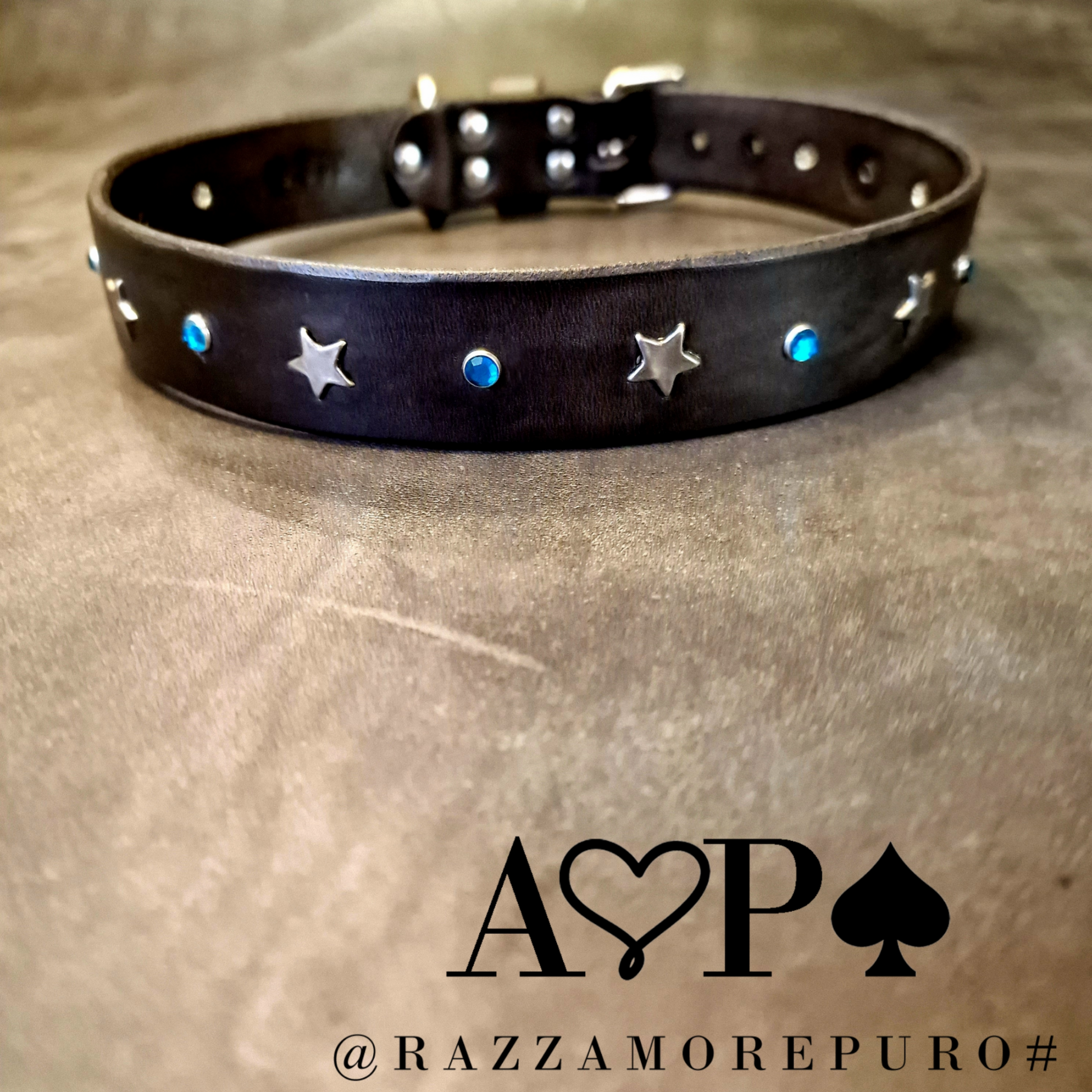 Collier en cuir avec de beaux strass océan alternés et des étoiles comme le montre la photo