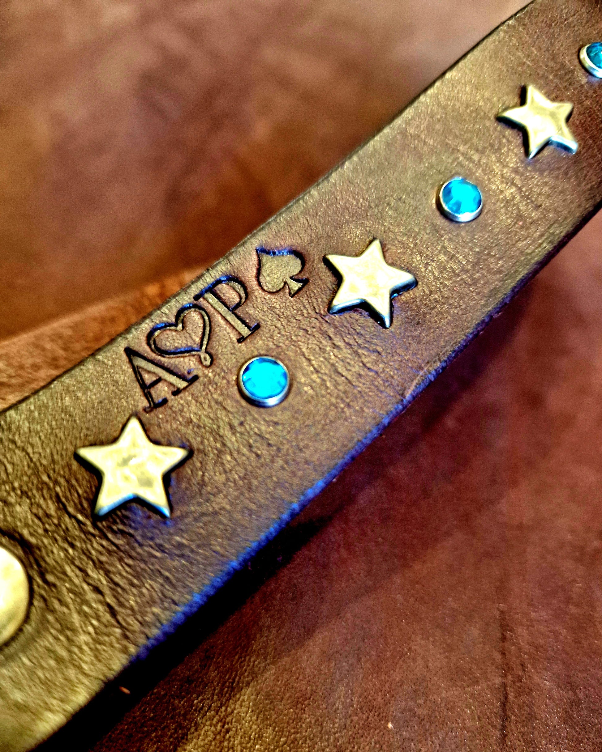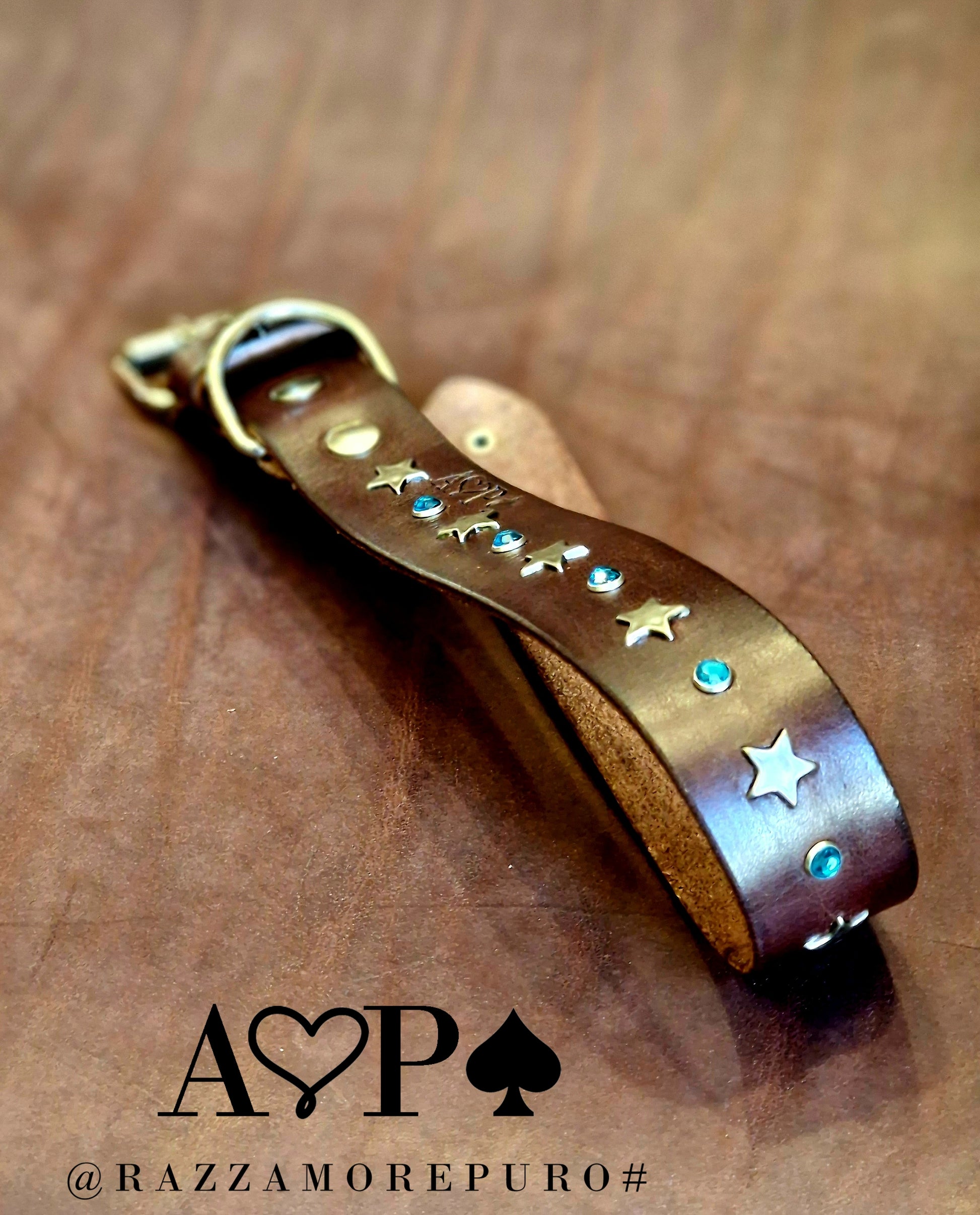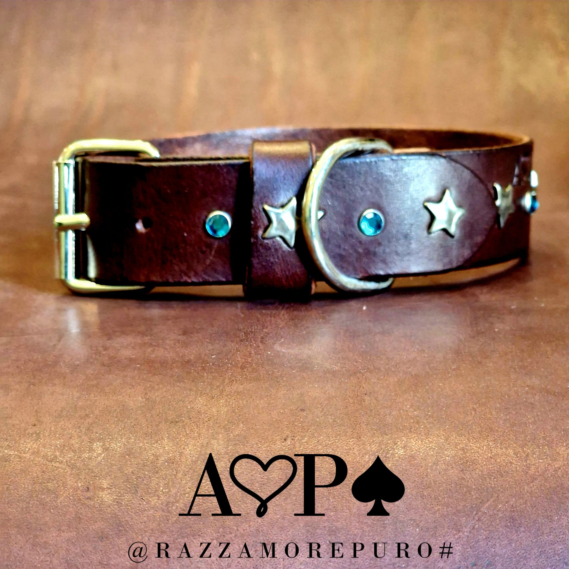 Collier en cuir avec de beaux strass océan alternés et des étoiles comme le montre la photo