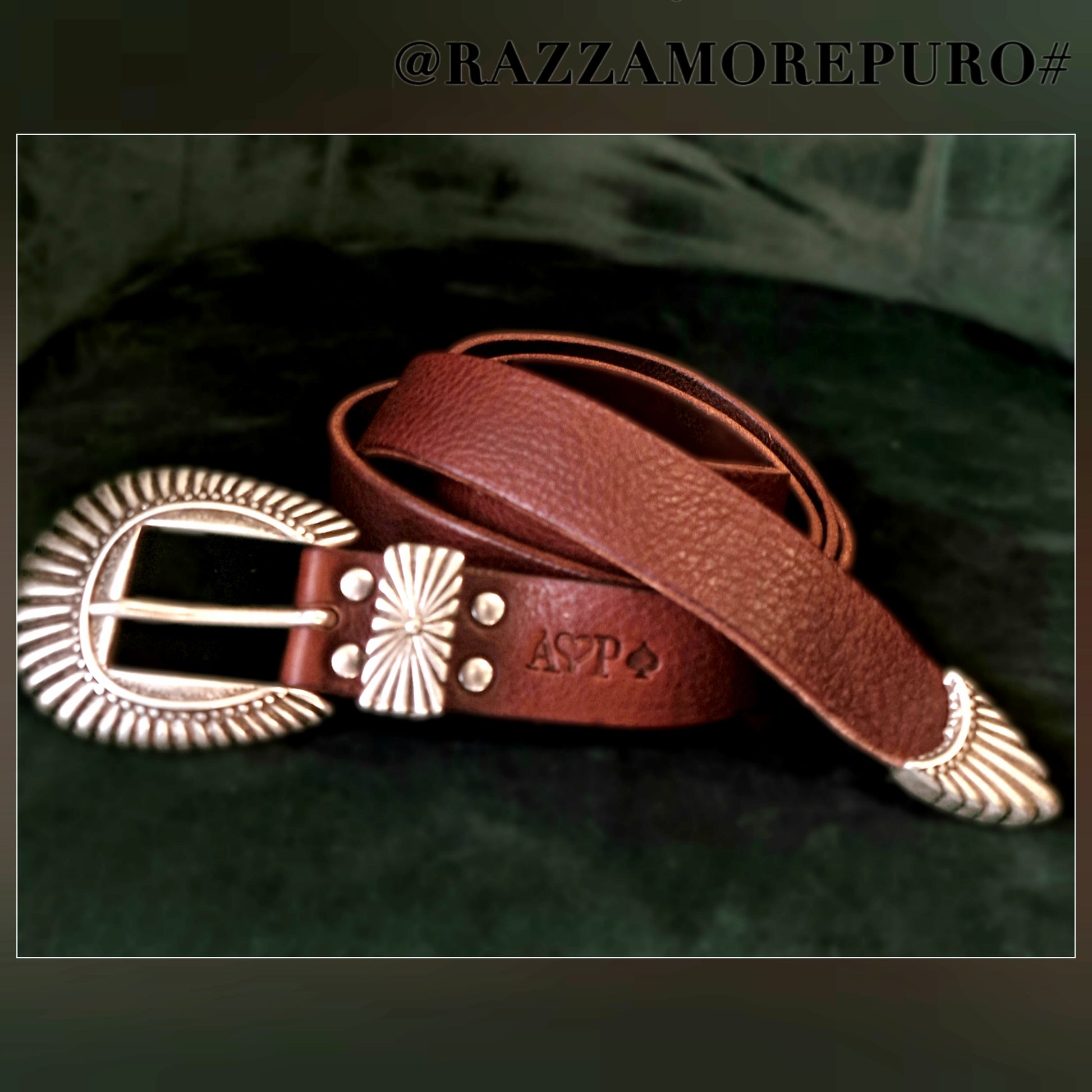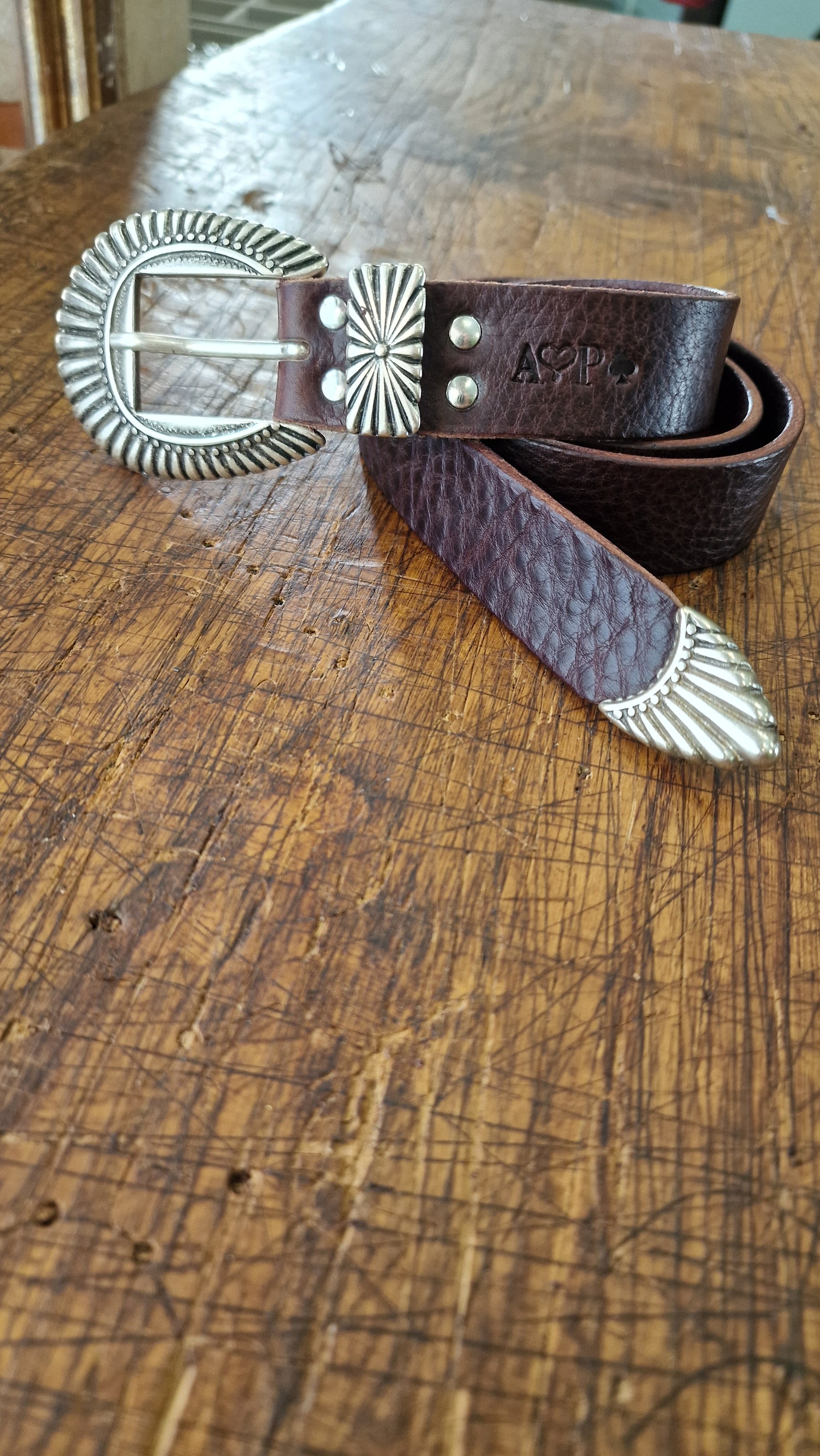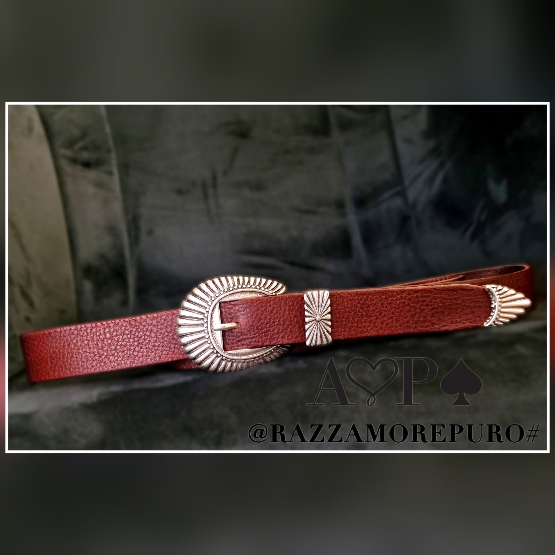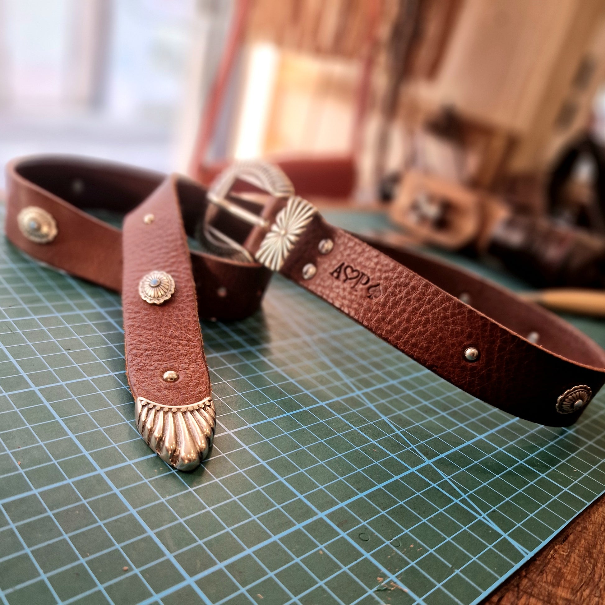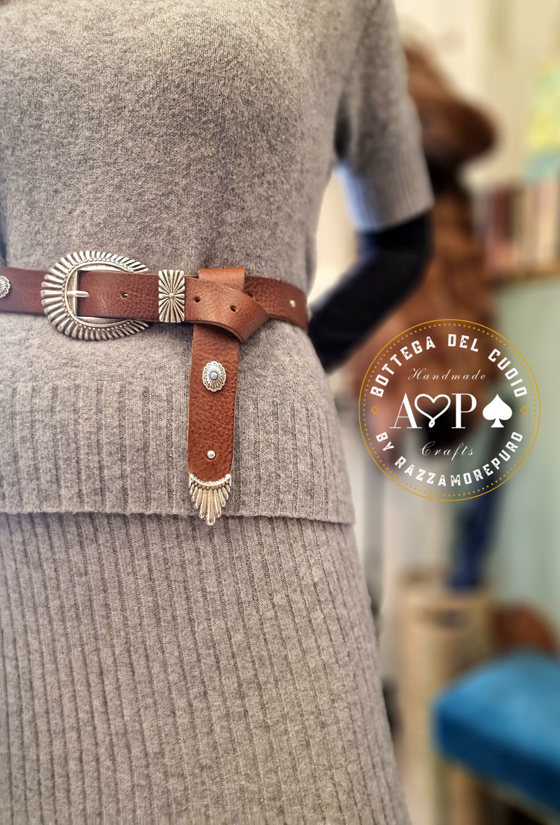 Bellissima cintura unisex in stile country chic alta 3cm circa con meravigliosi concho alternati a piccole sfere neutre su tutta la lunghezza come da foto