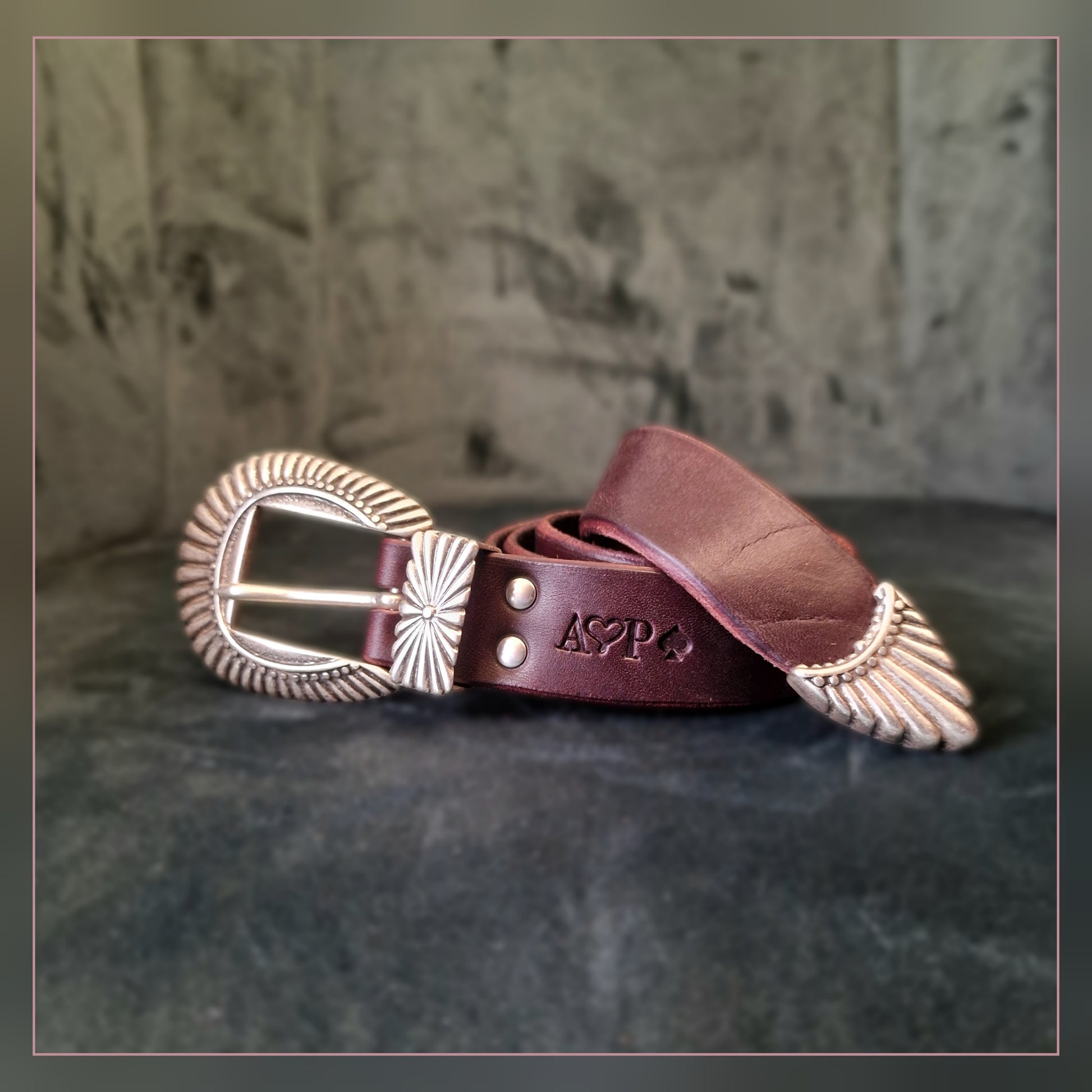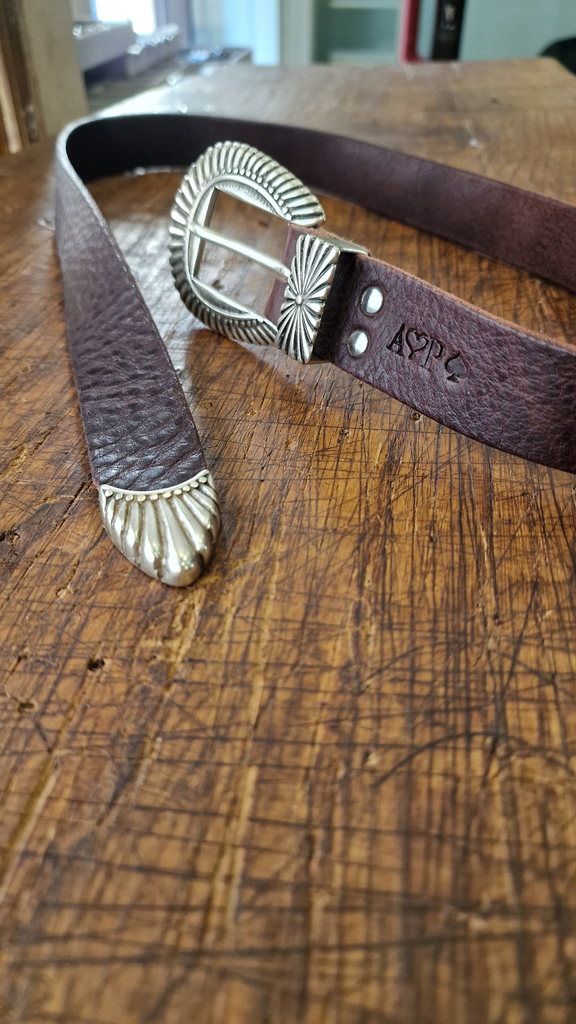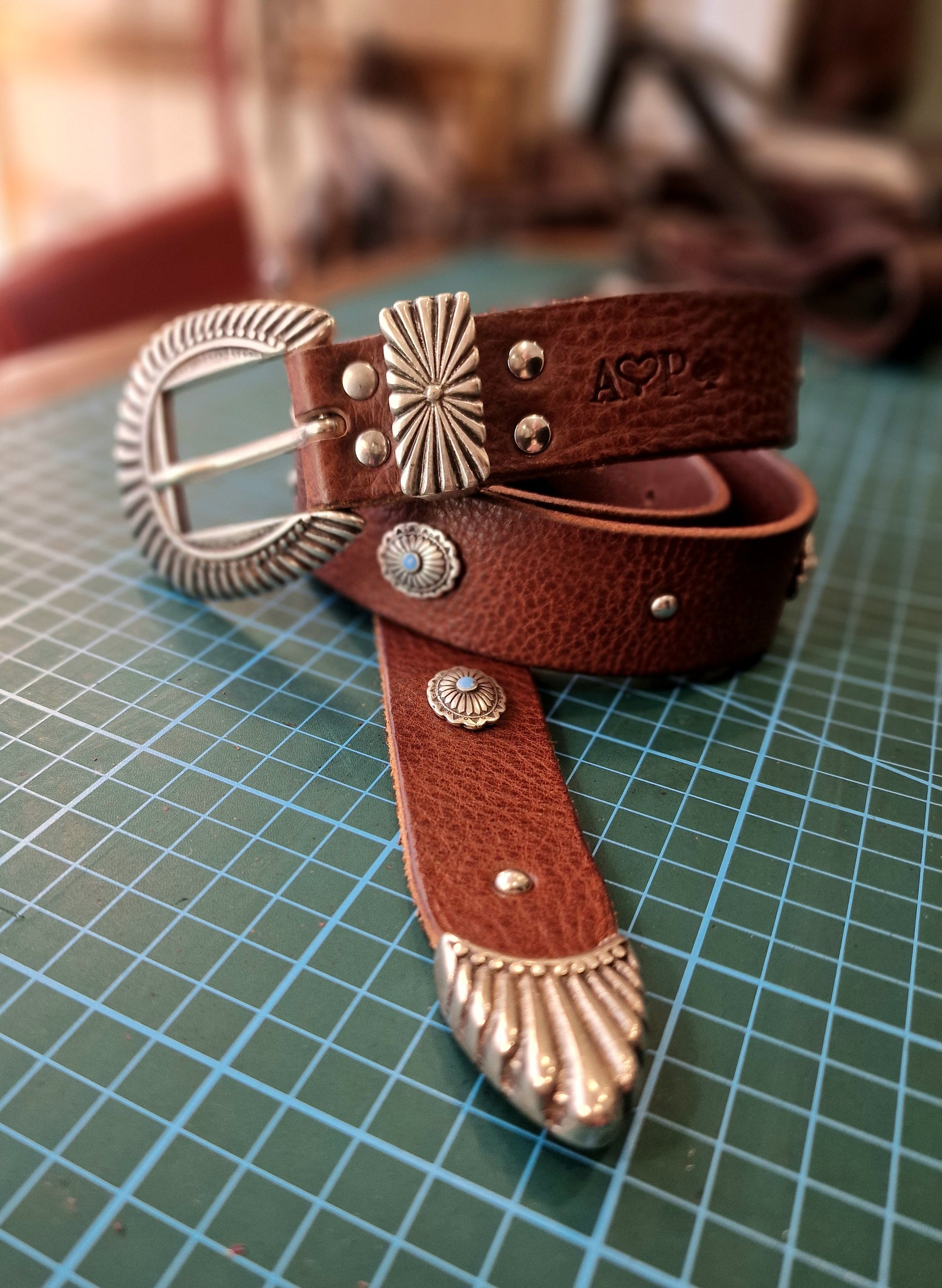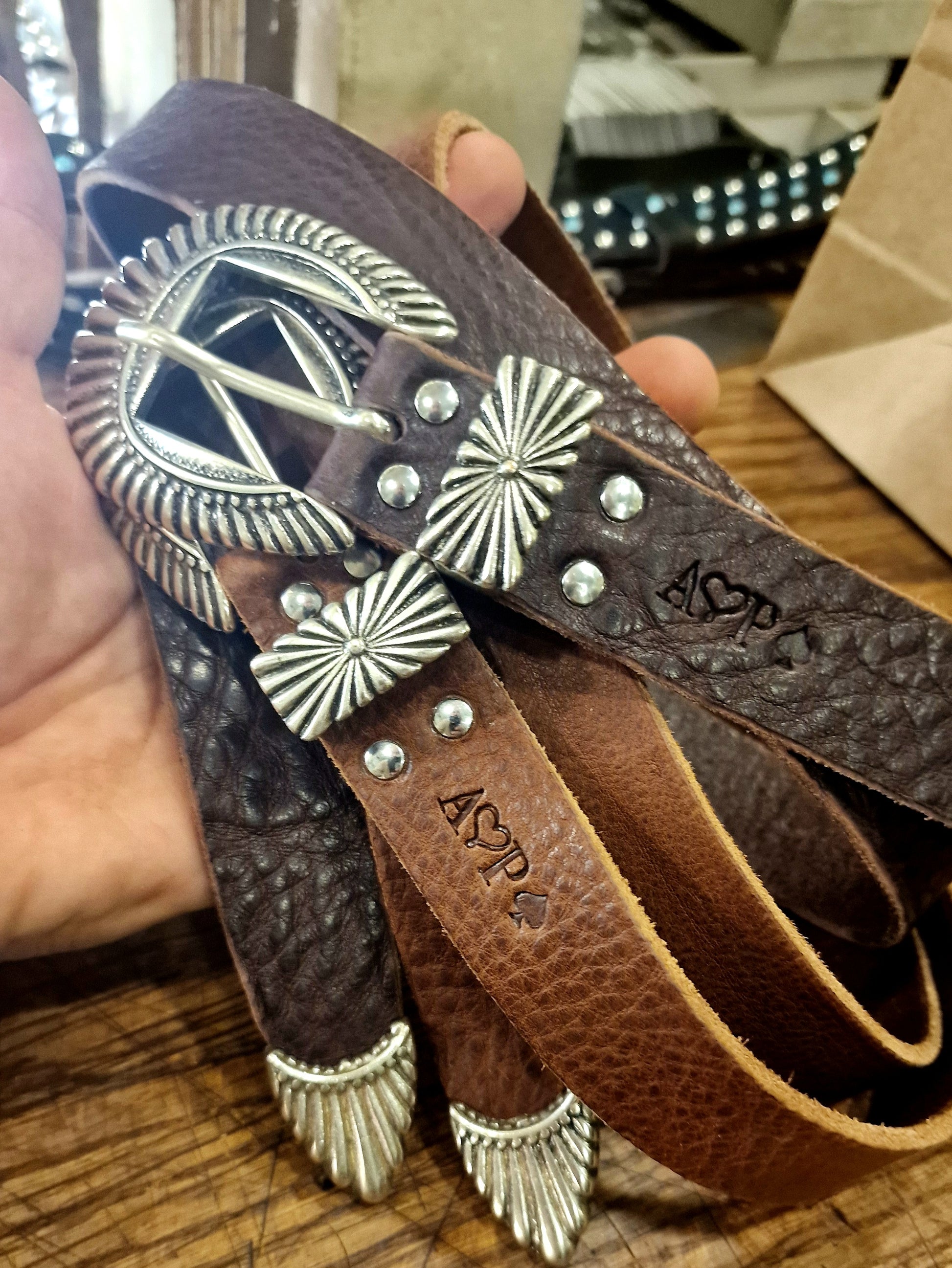 Bellissima cintura unisex in stile country chic alta 3cm circa con meravigliosi concho alternati a piccole sfere neutre su tutta la lunghezza come da foto