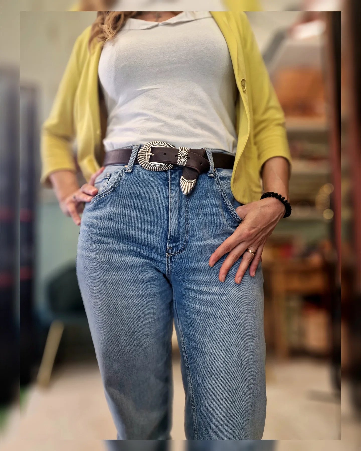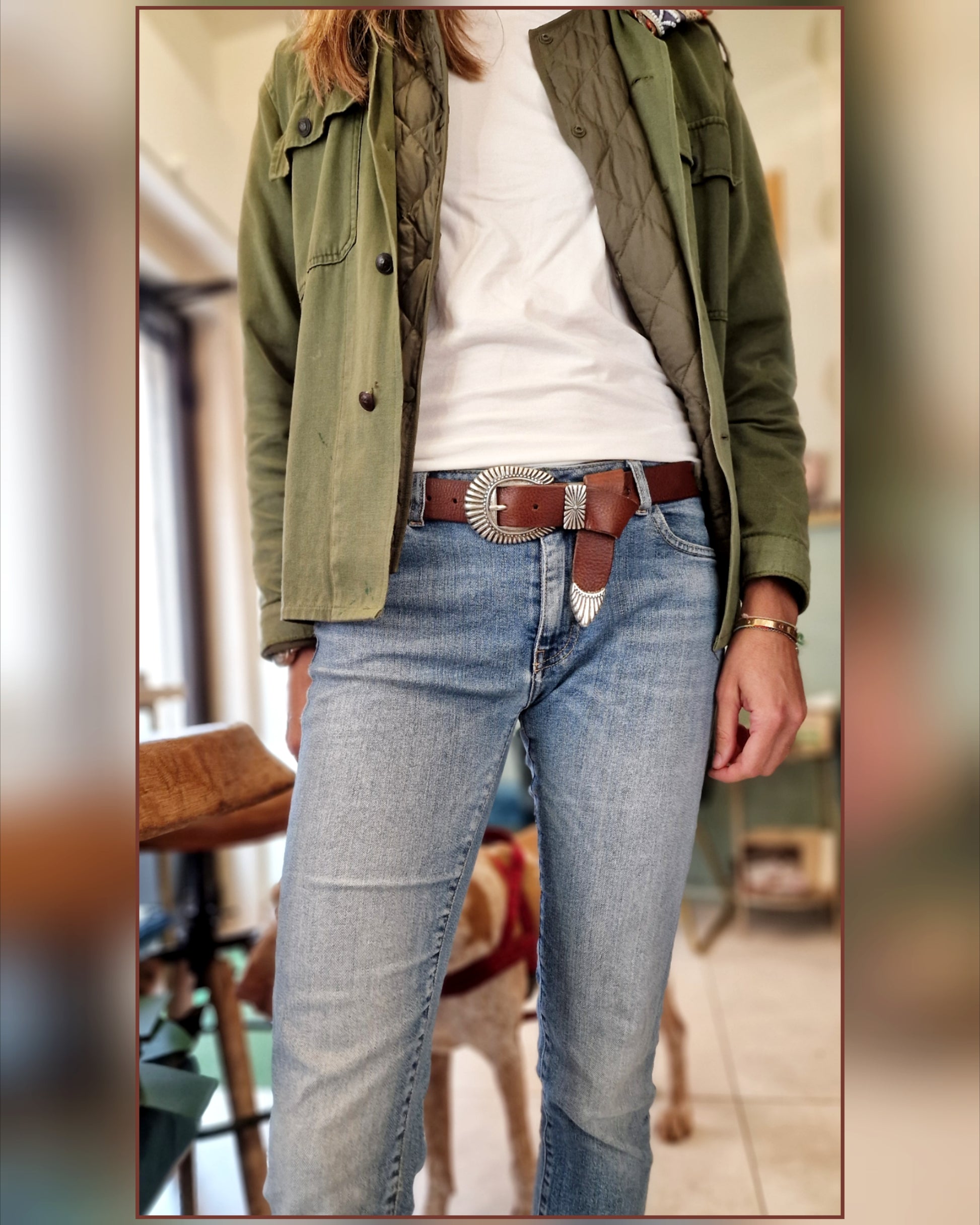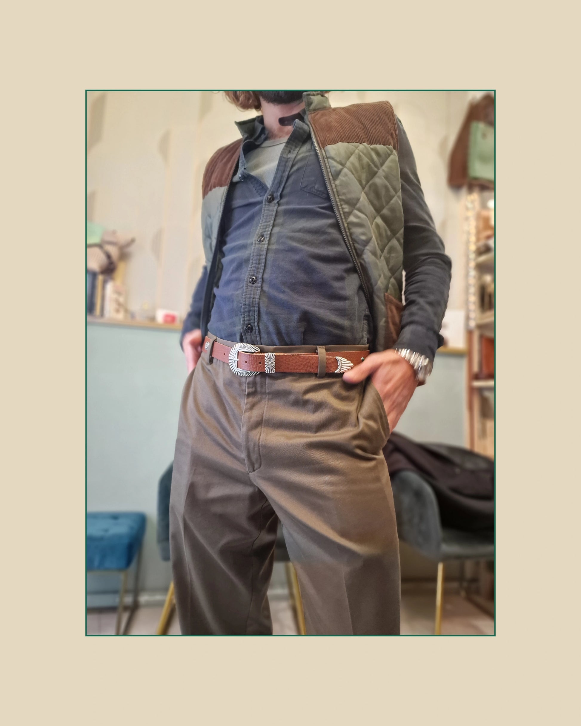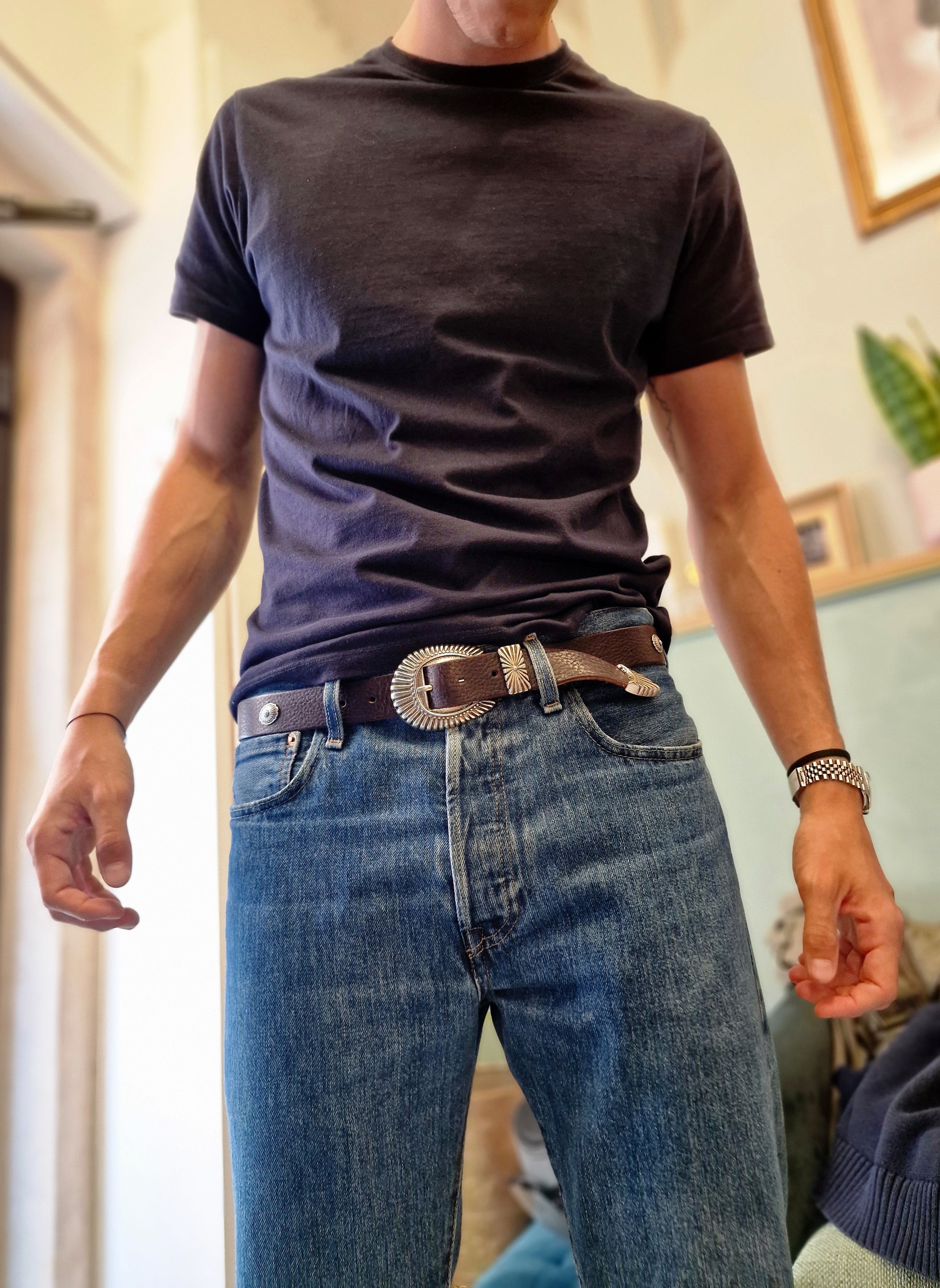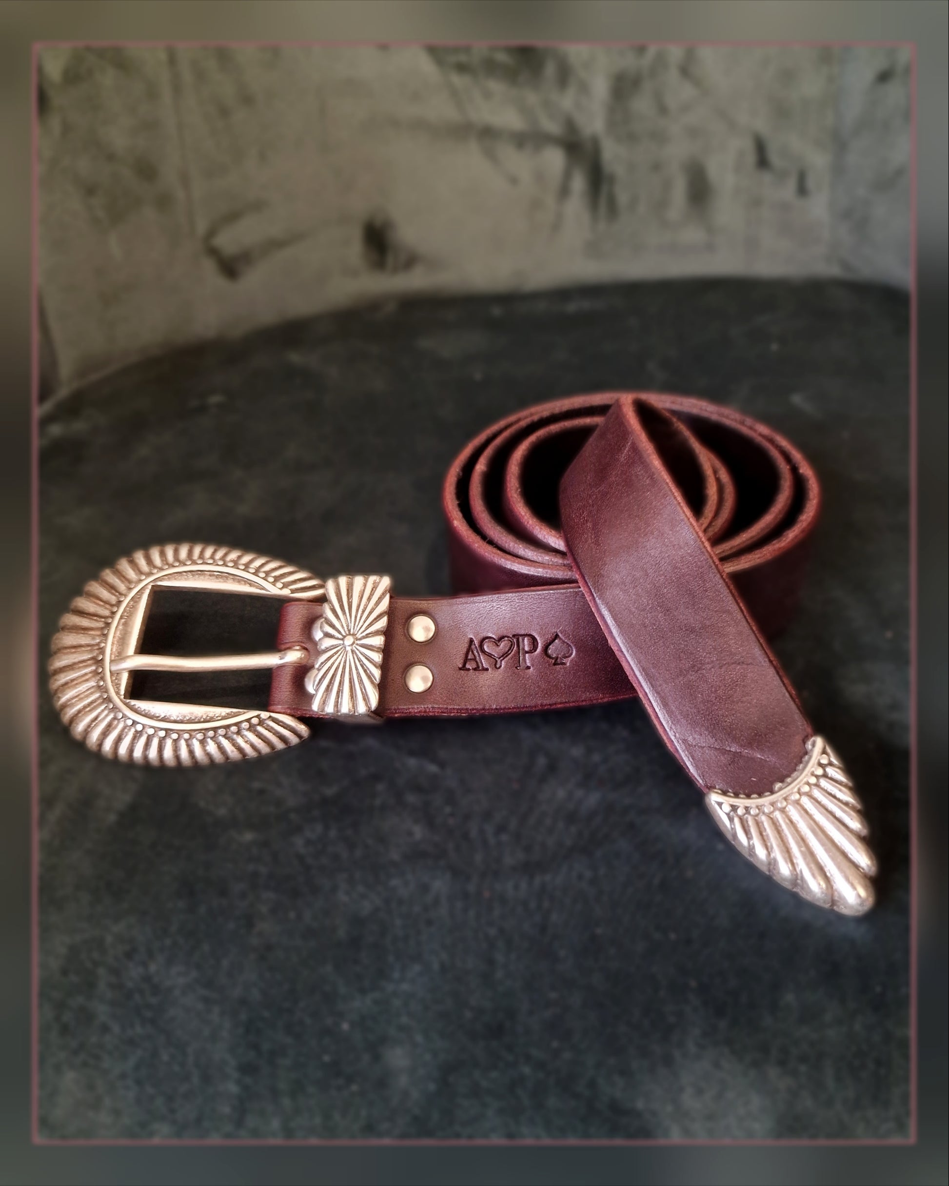 Bellissima cintura unisex in stile country chic alta 3cm circa con meravigliosi concho alternati a piccole sfere neutre su tutta la lunghezza come da foto