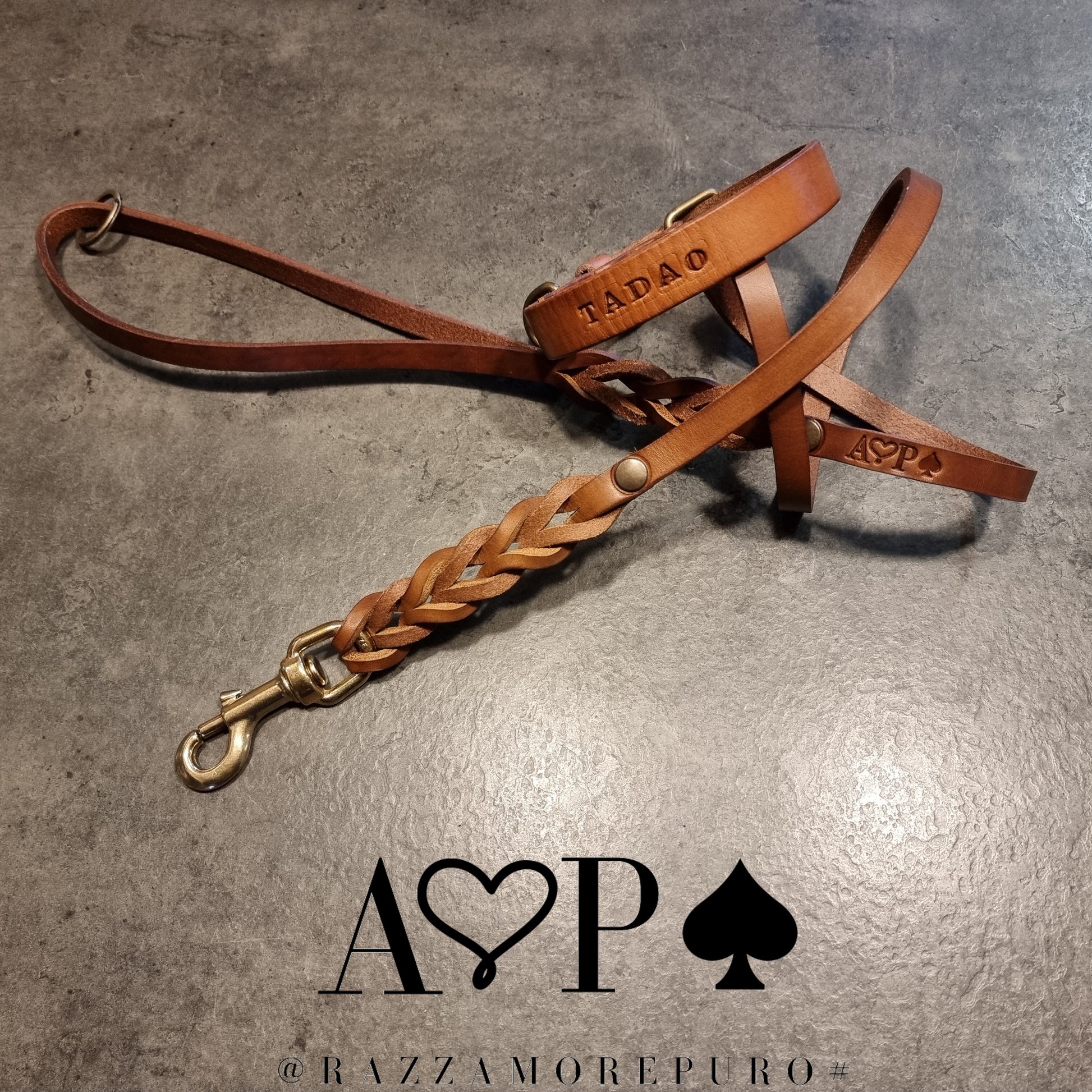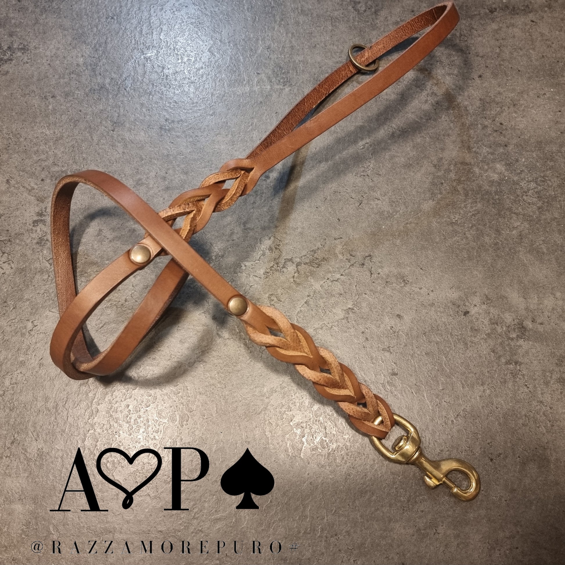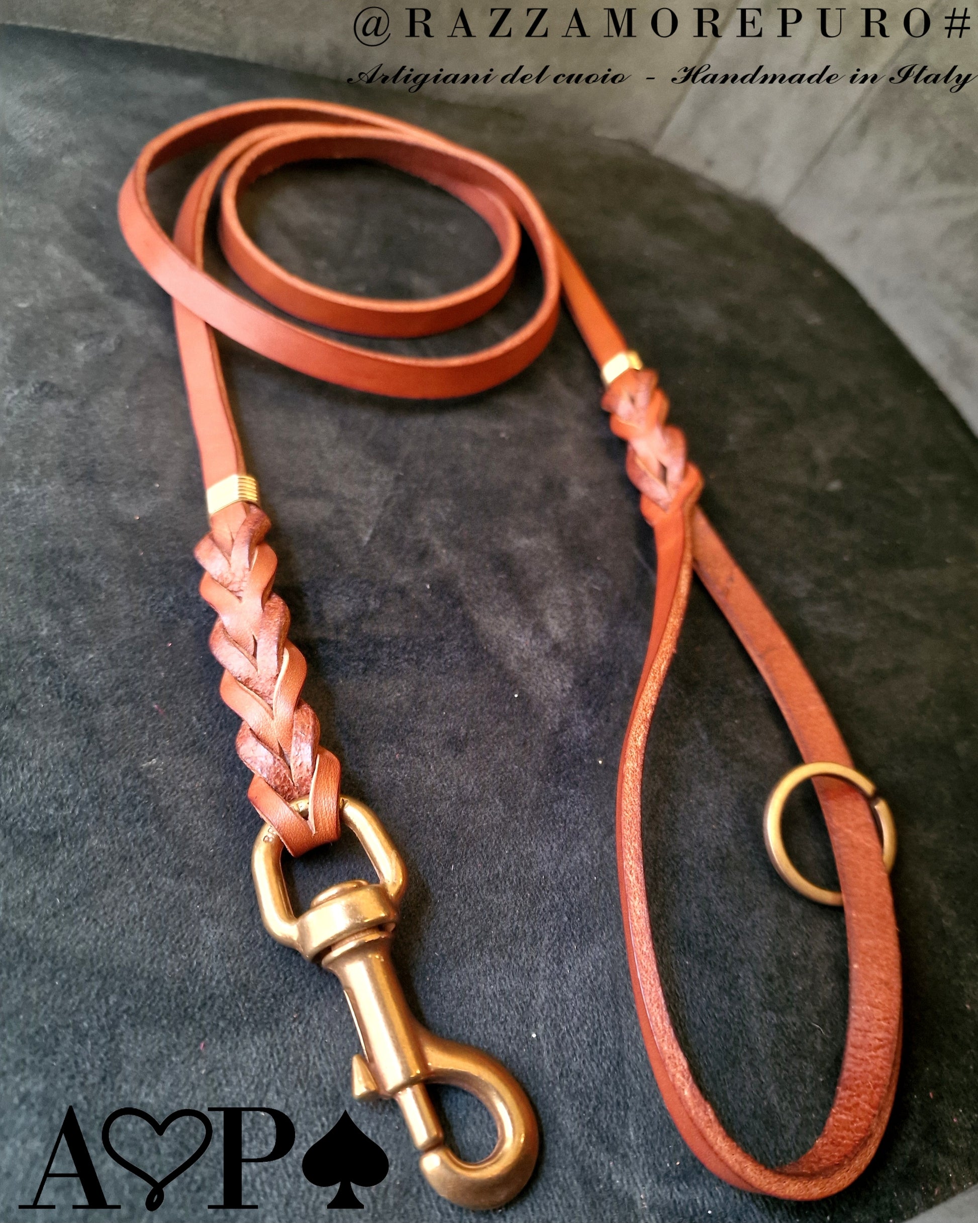 Laisse en cuir toscan tanné végétal, graissé et fabriqué à la main.