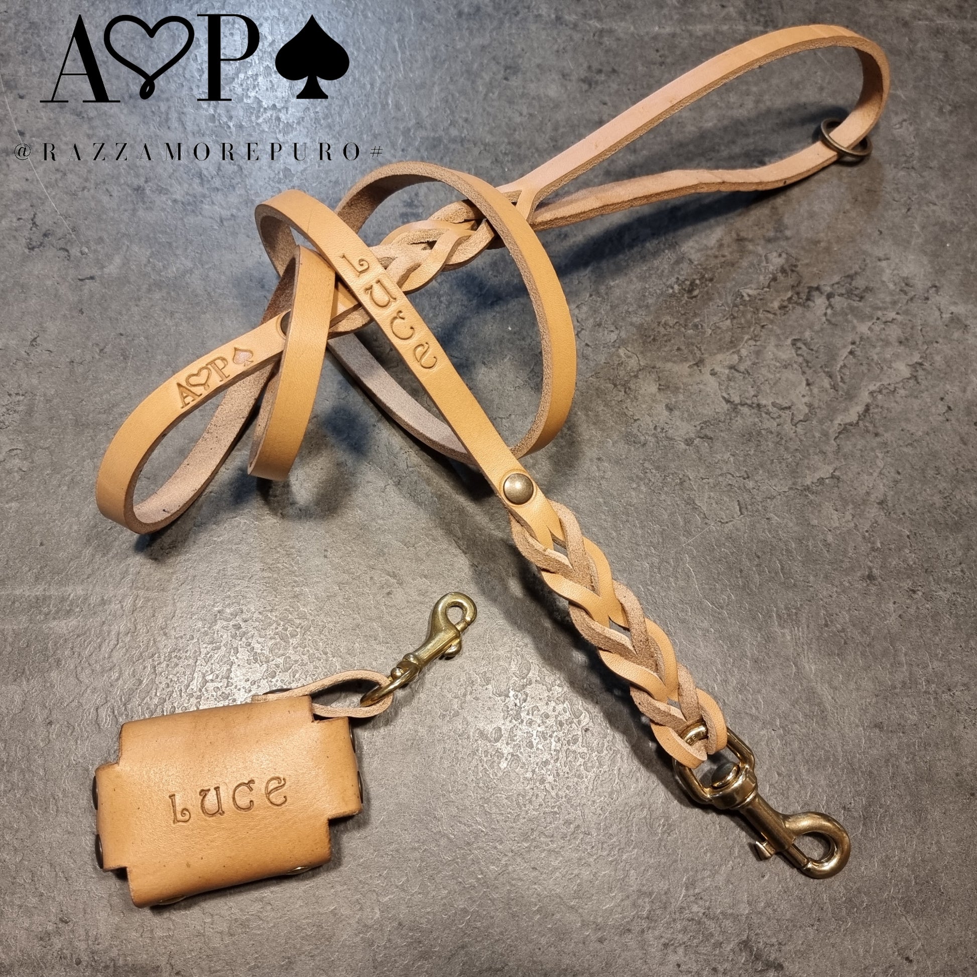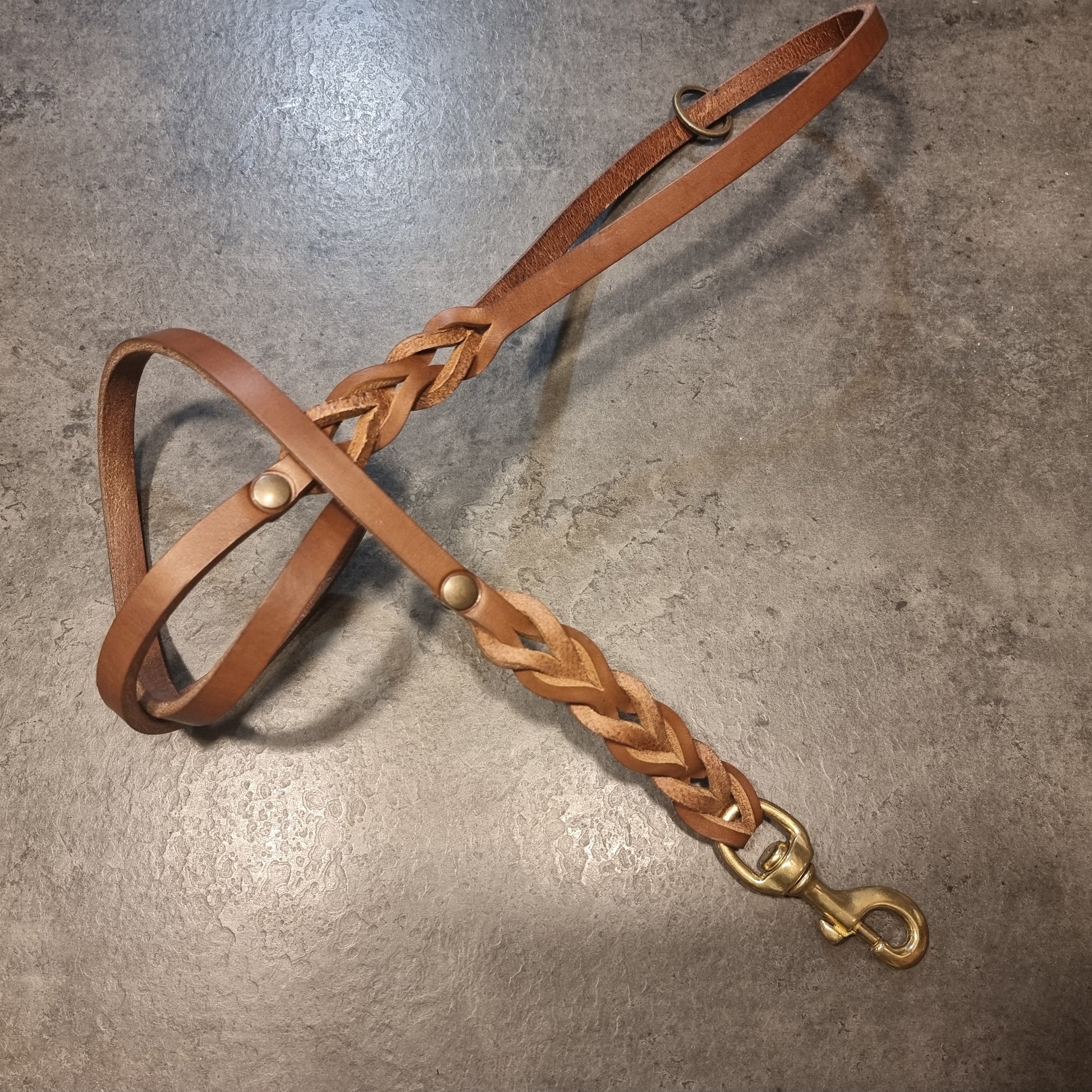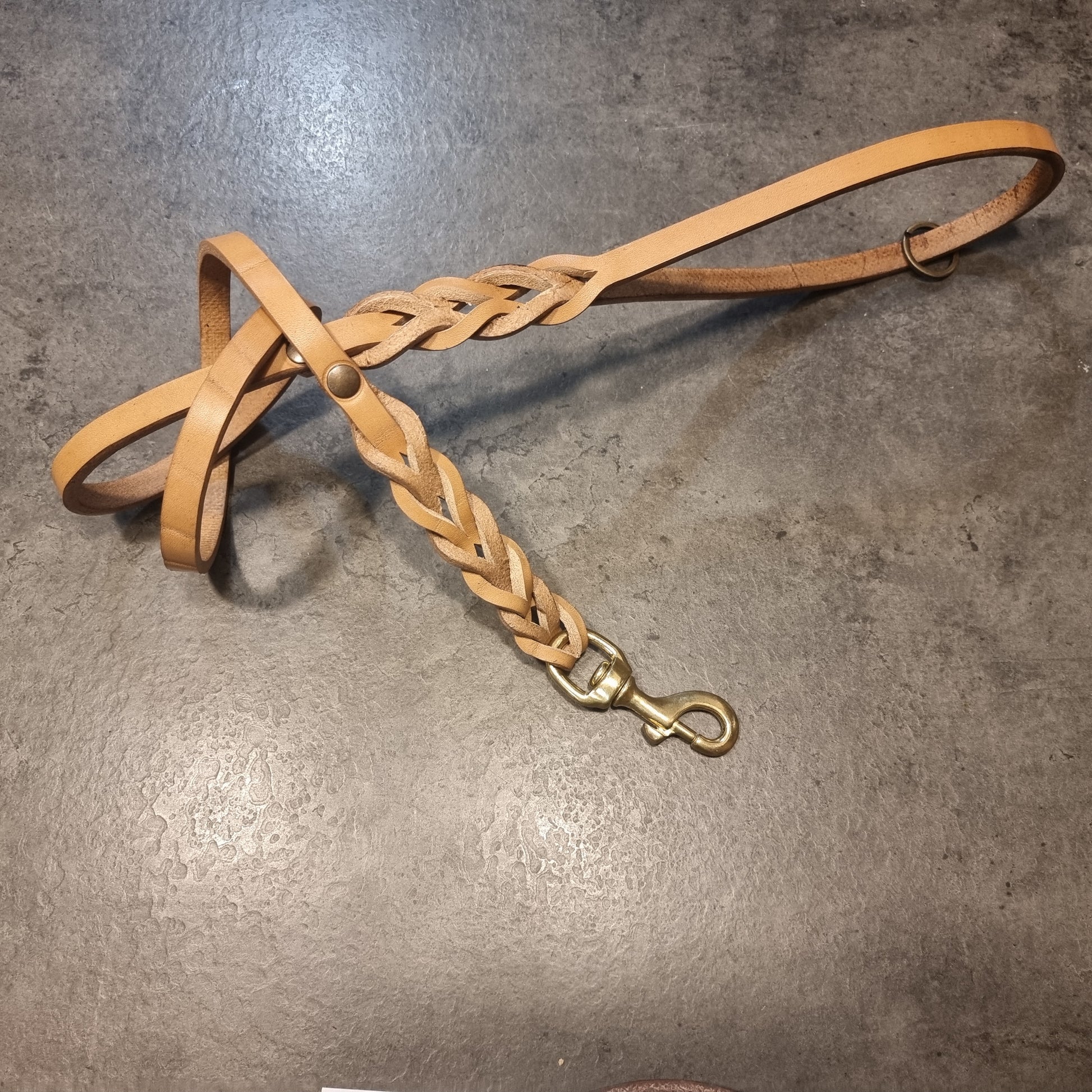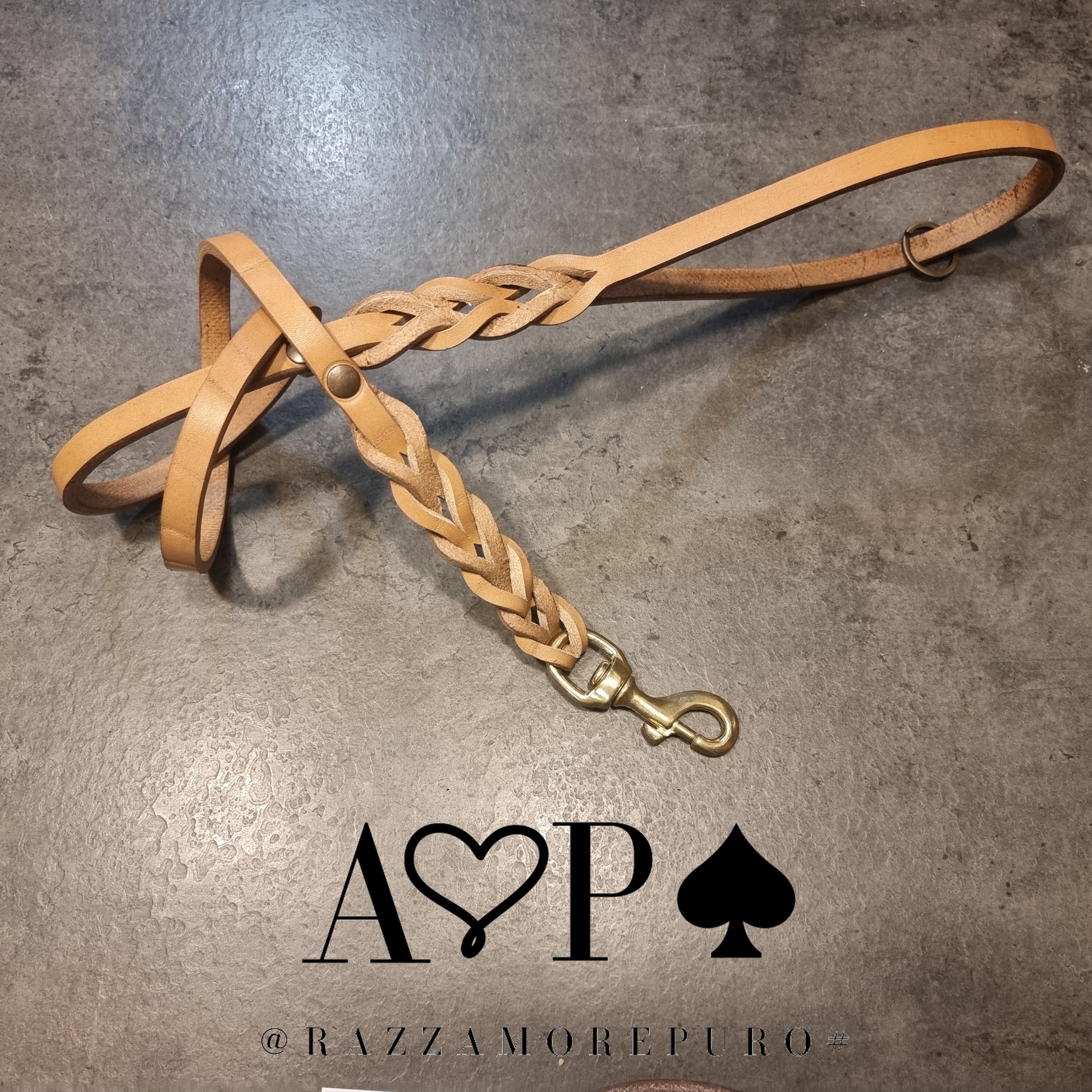 Laisse en cuir toscan tanné végétal, graissé et fabriqué à la main.