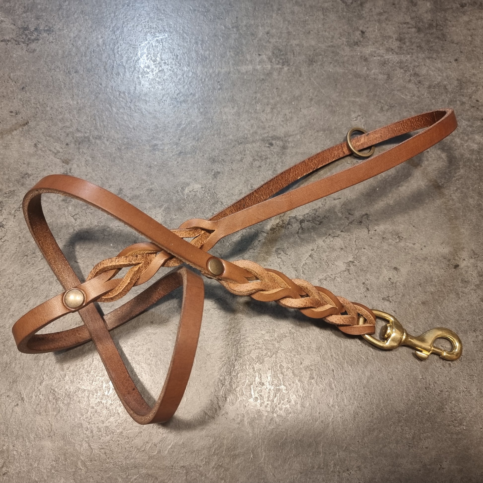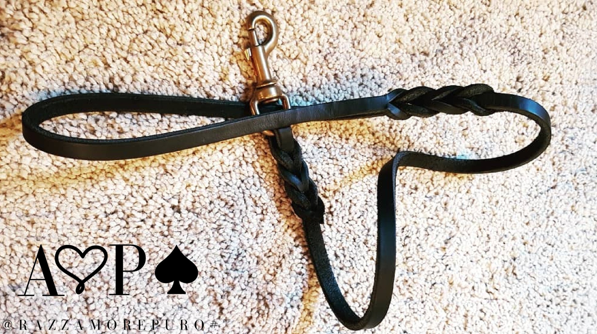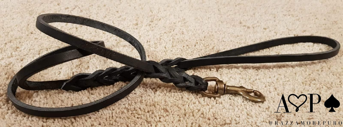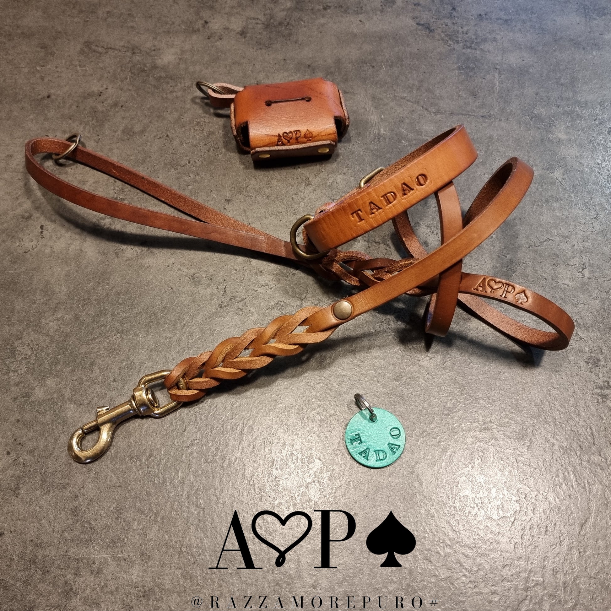 Laisse en cuir toscan tanné végétal, graissé et fabriqué à la main.