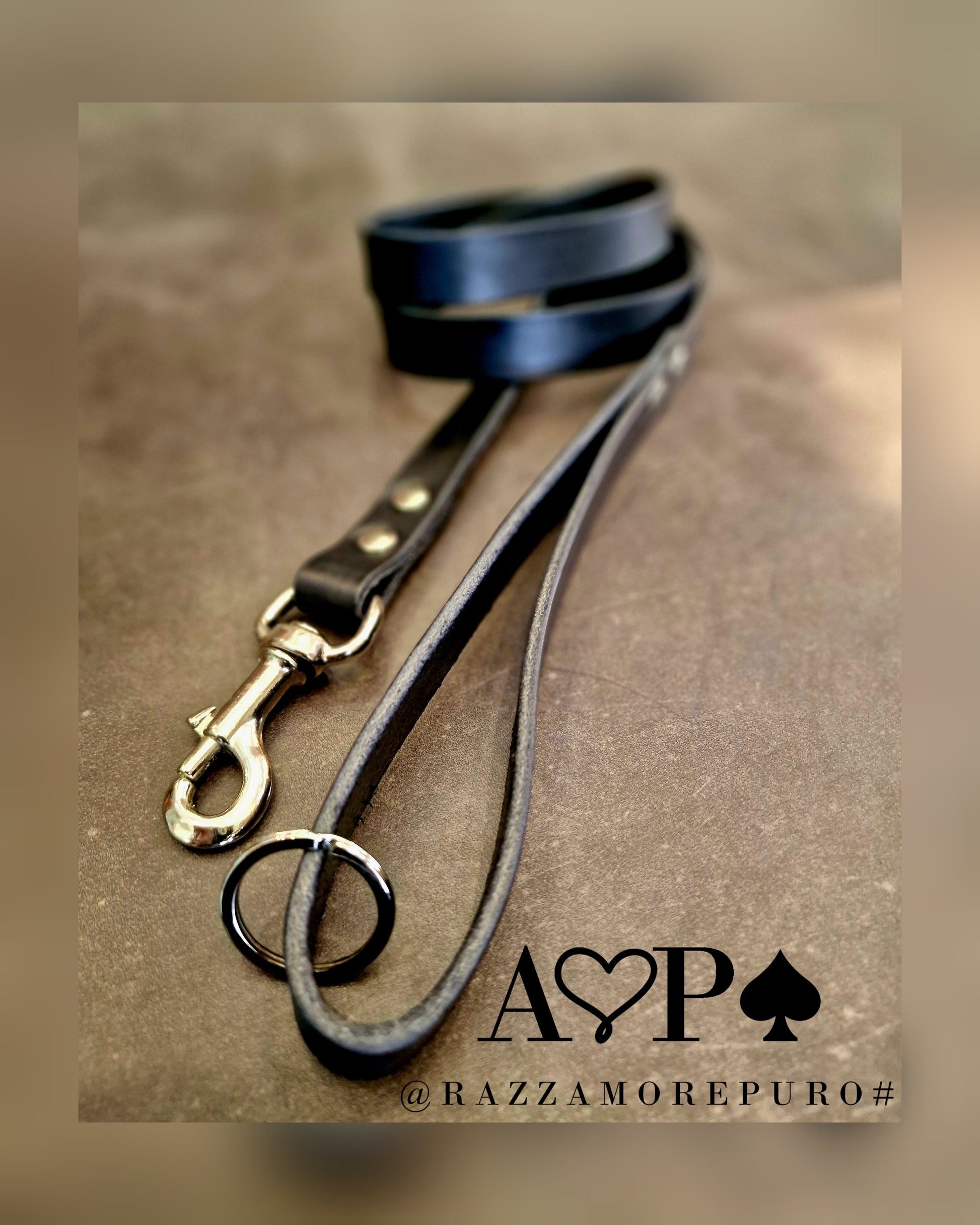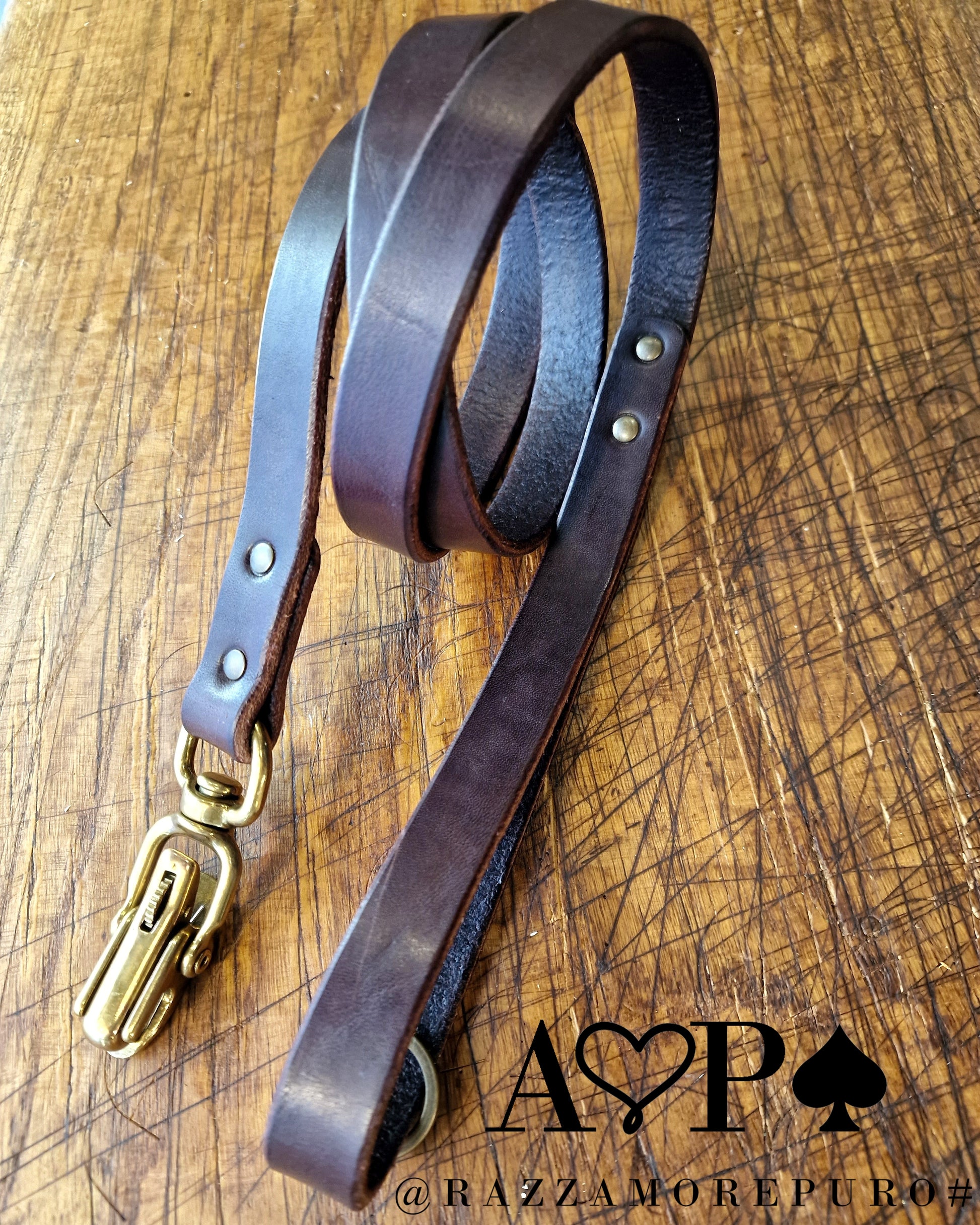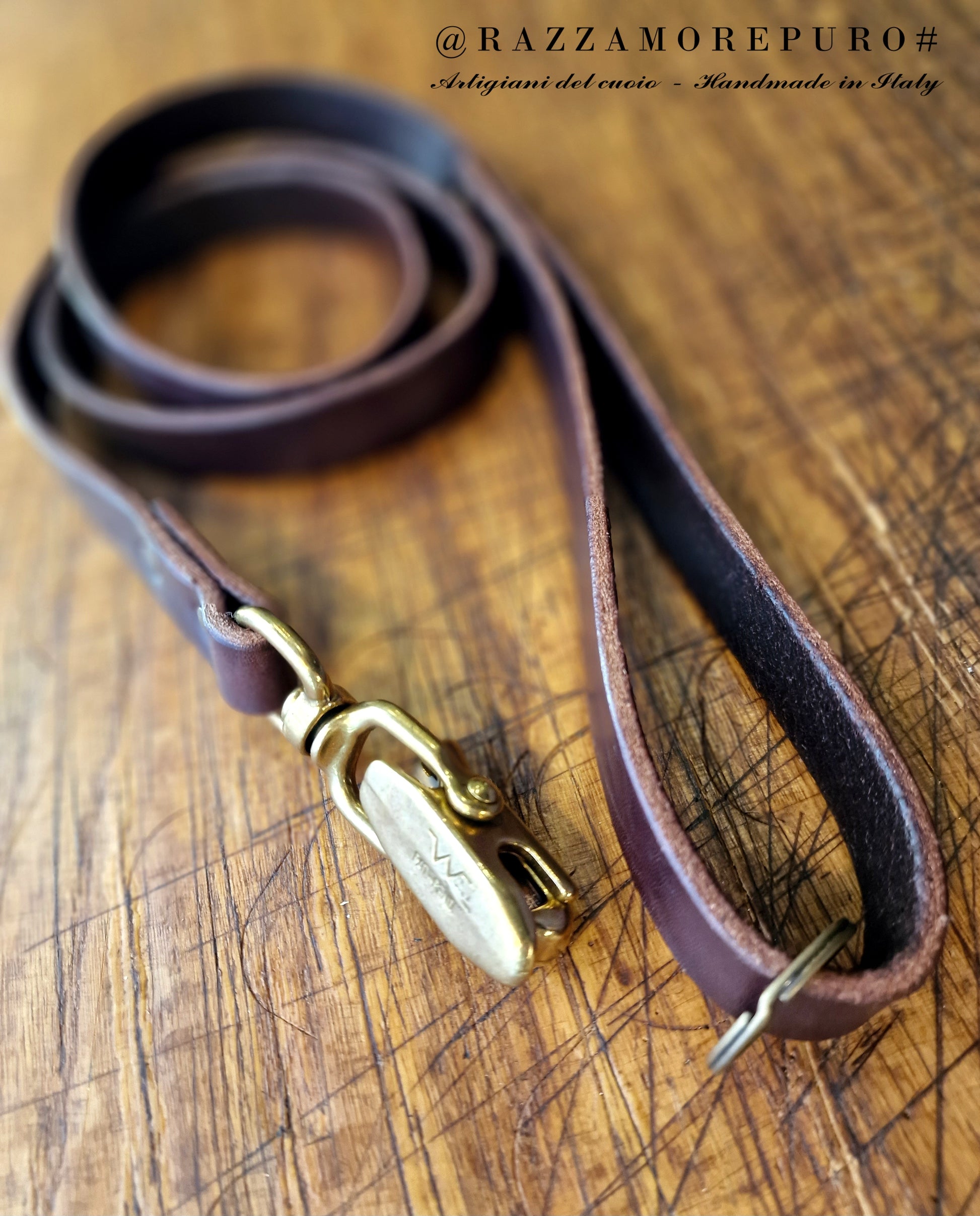 Laisse en cuir toscan tanné végétal, graissé et fabriqué à la main.