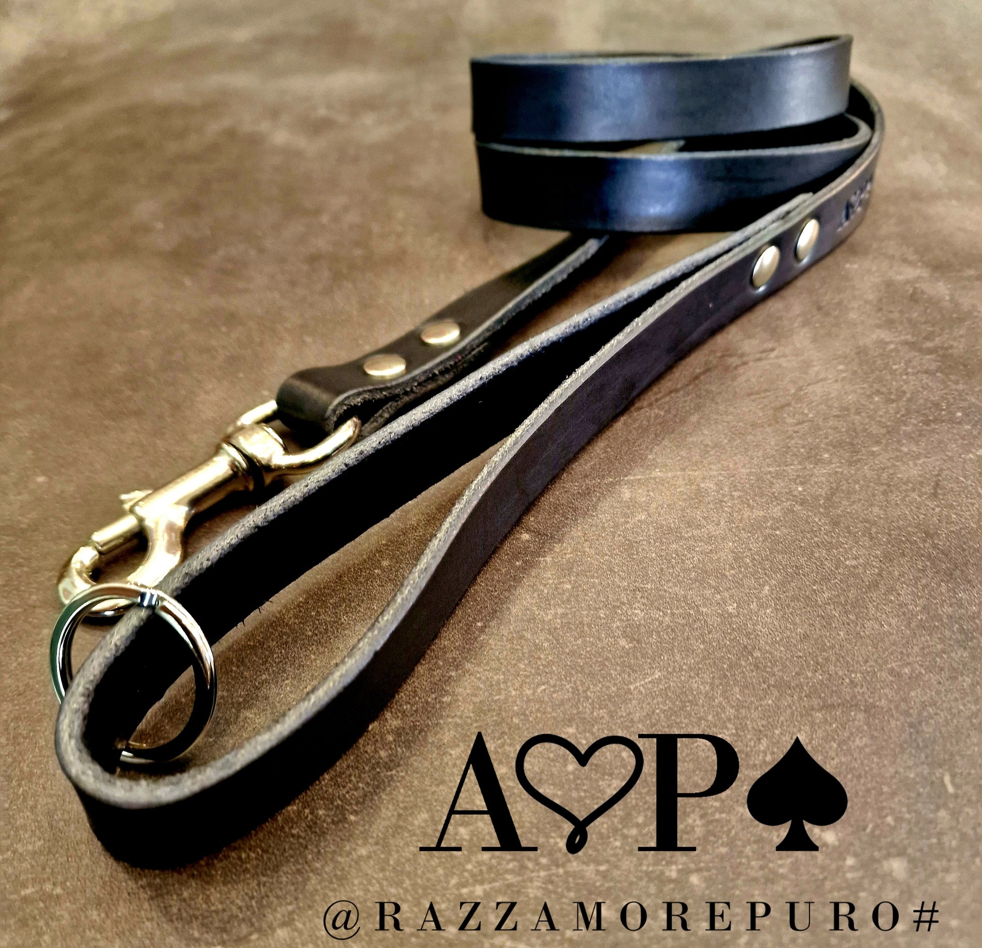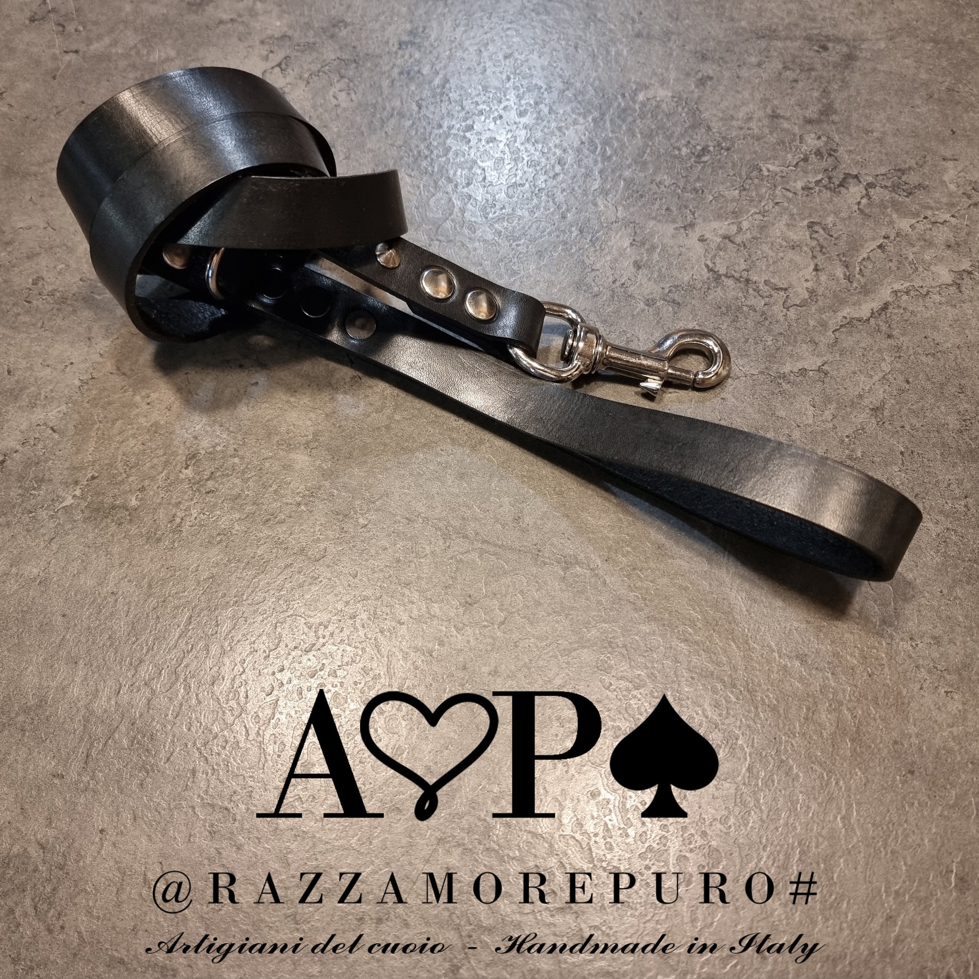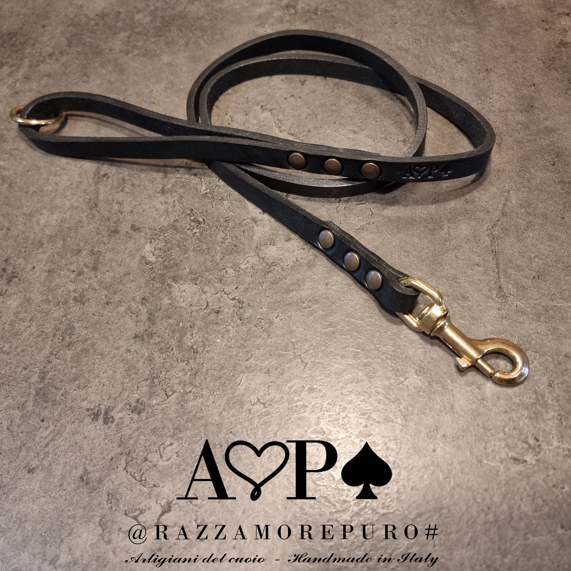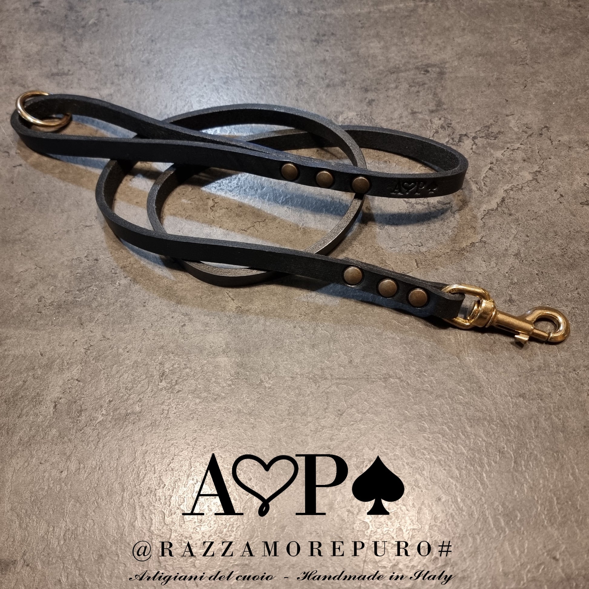 Laisse en cuir toscan tanné végétal, graissé et fabriqué à la main.