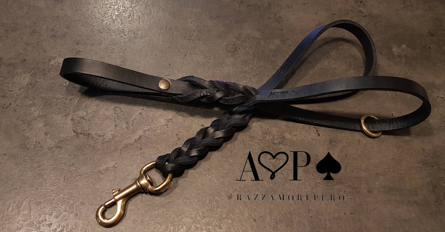Laisse en cuir toscan tanné végétal, graissé et fabriqué à la main.