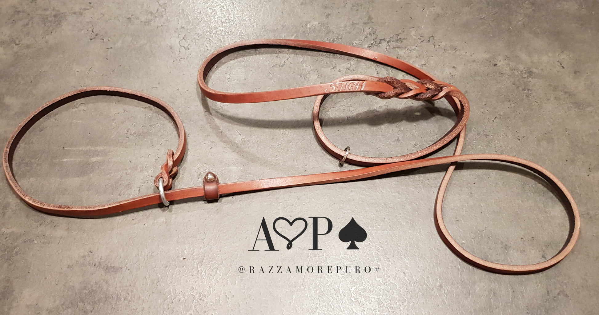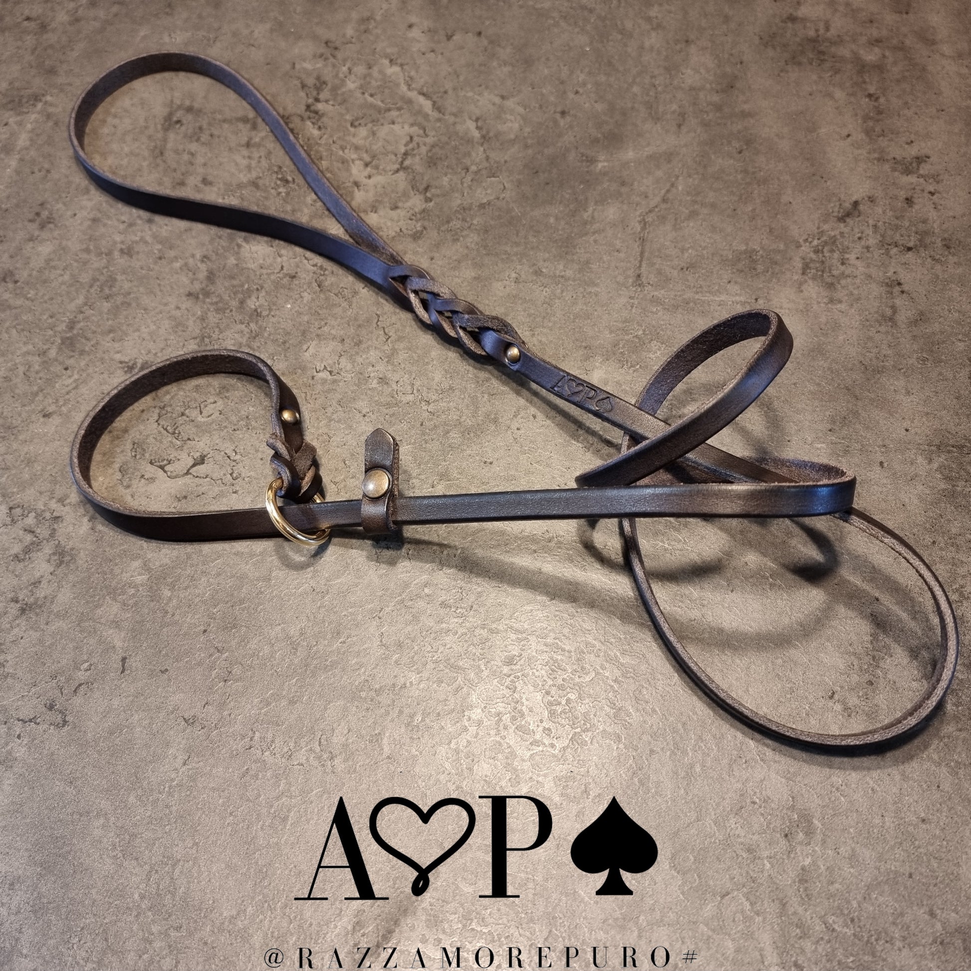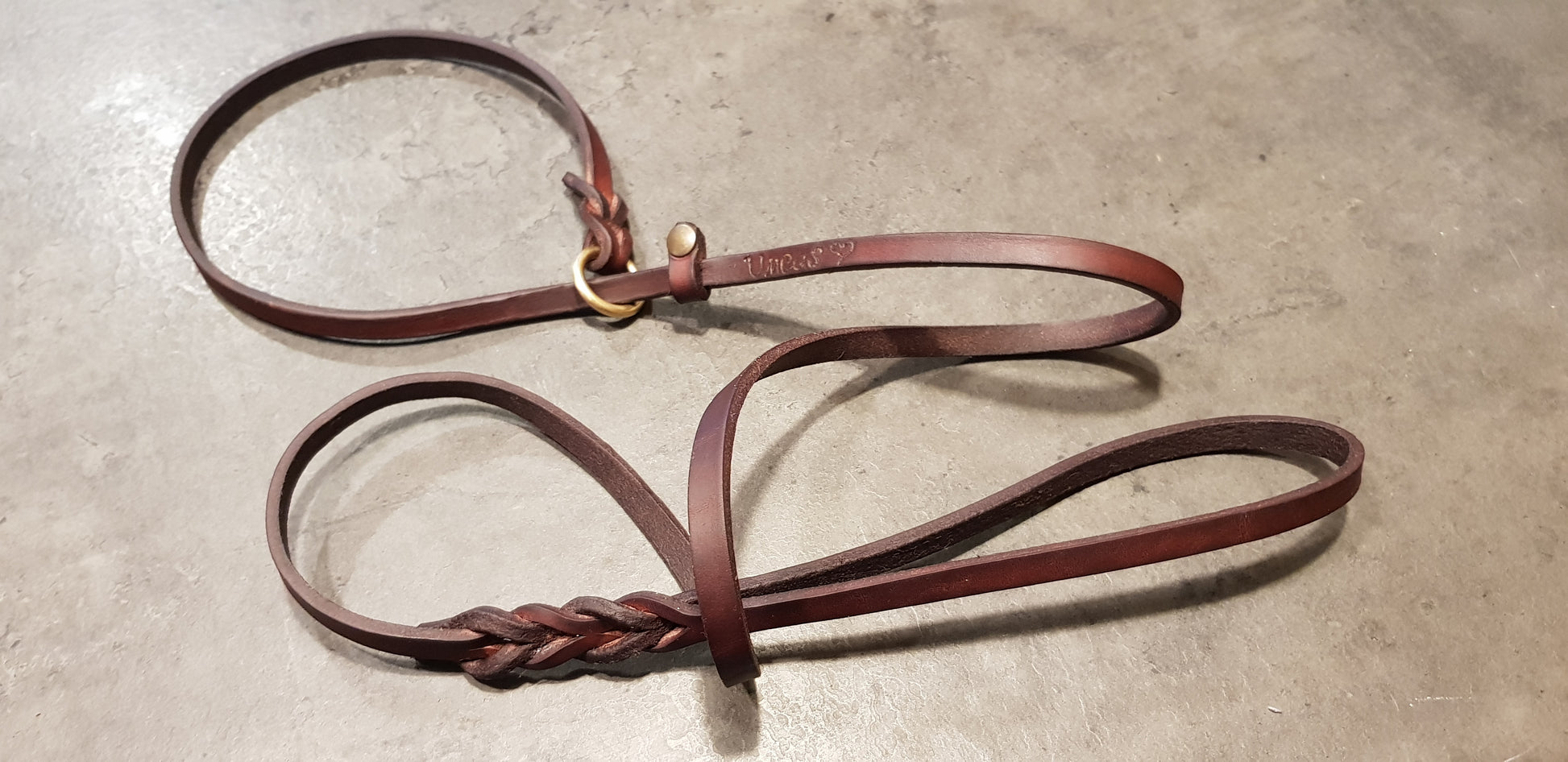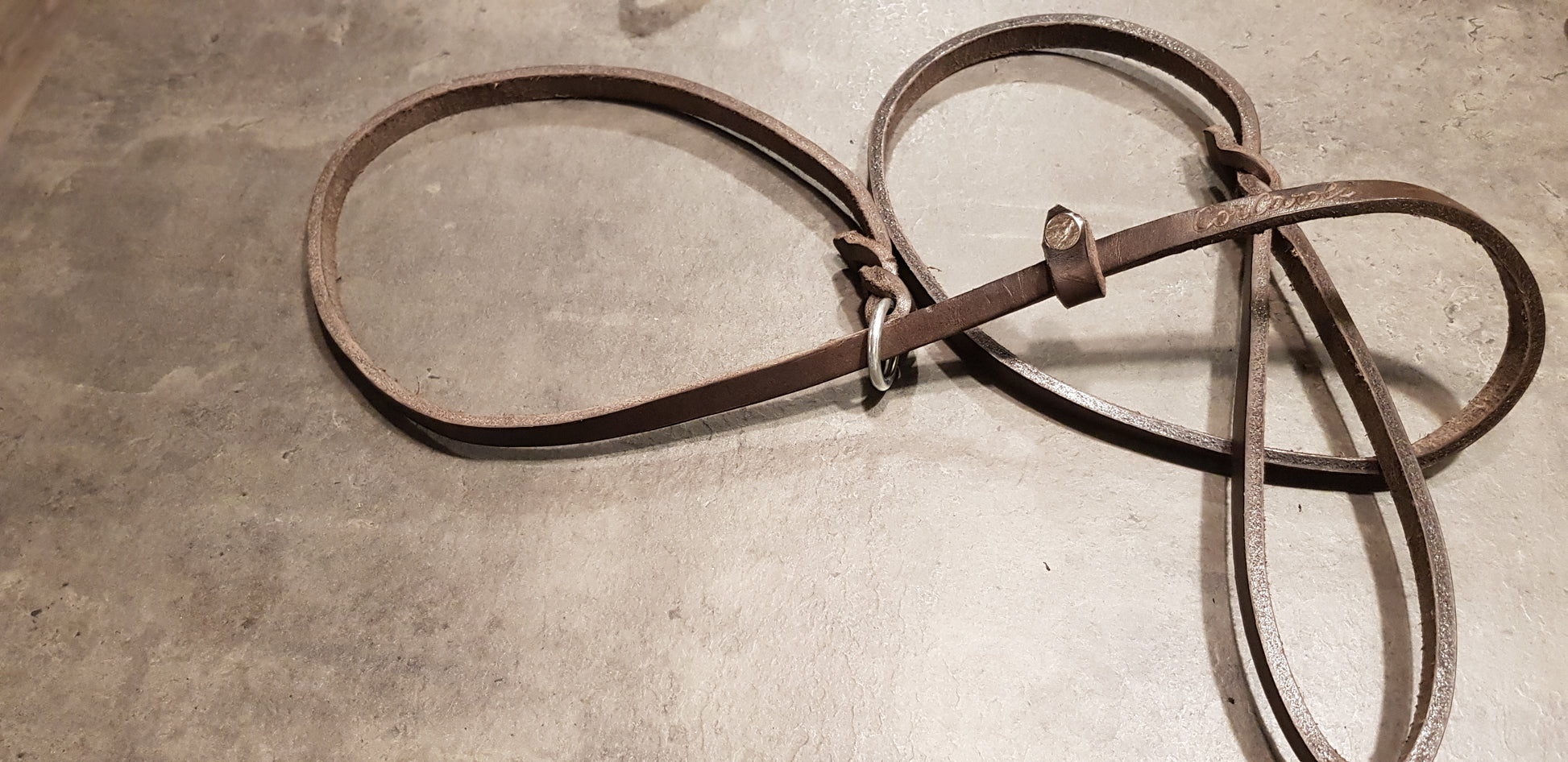Laisse en cuir toscan tanné végétal, graissé et fabriqué à la main.