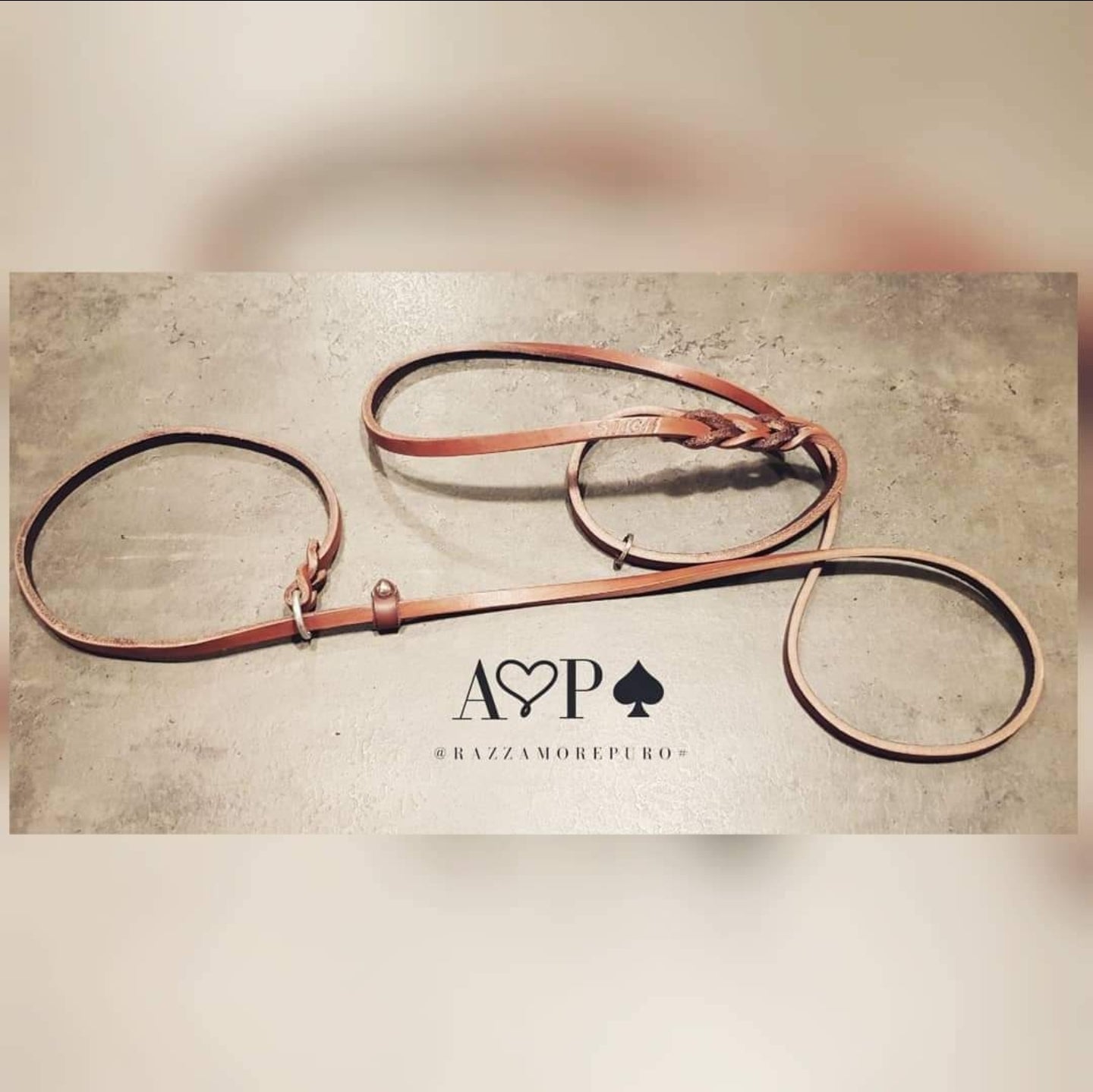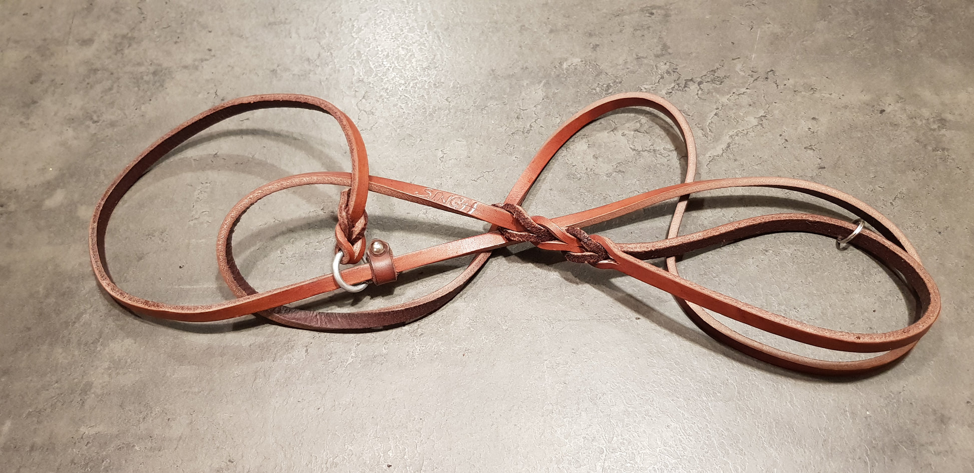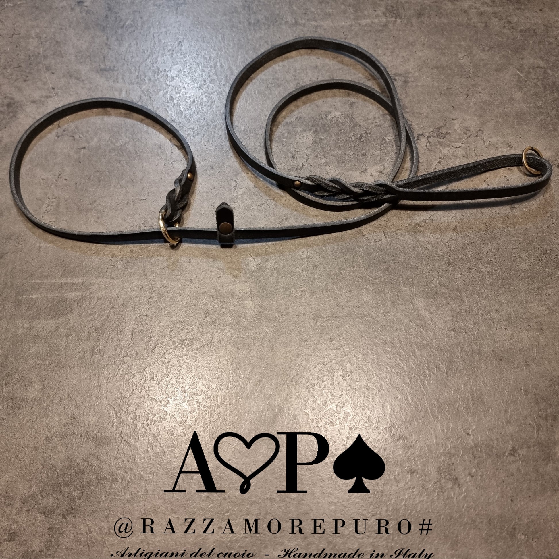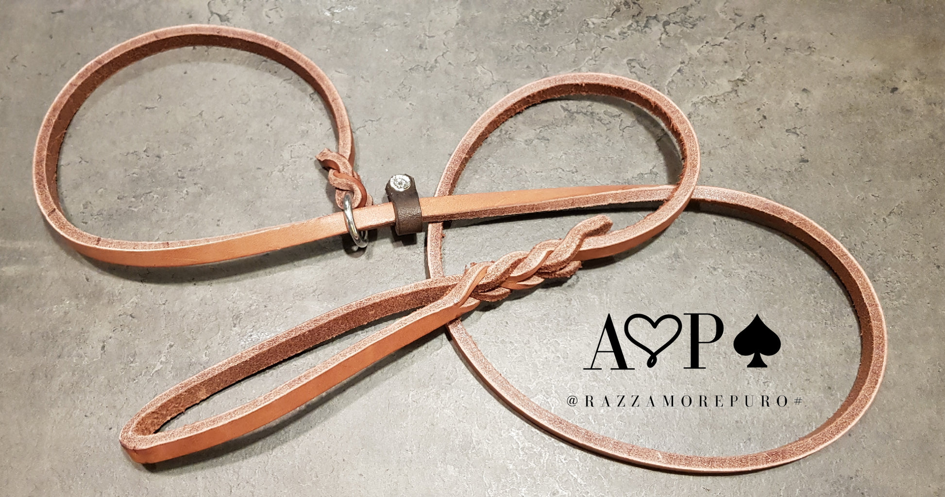 Laisse en cuir toscan tanné végétal, graissé et fabriqué à la main.
