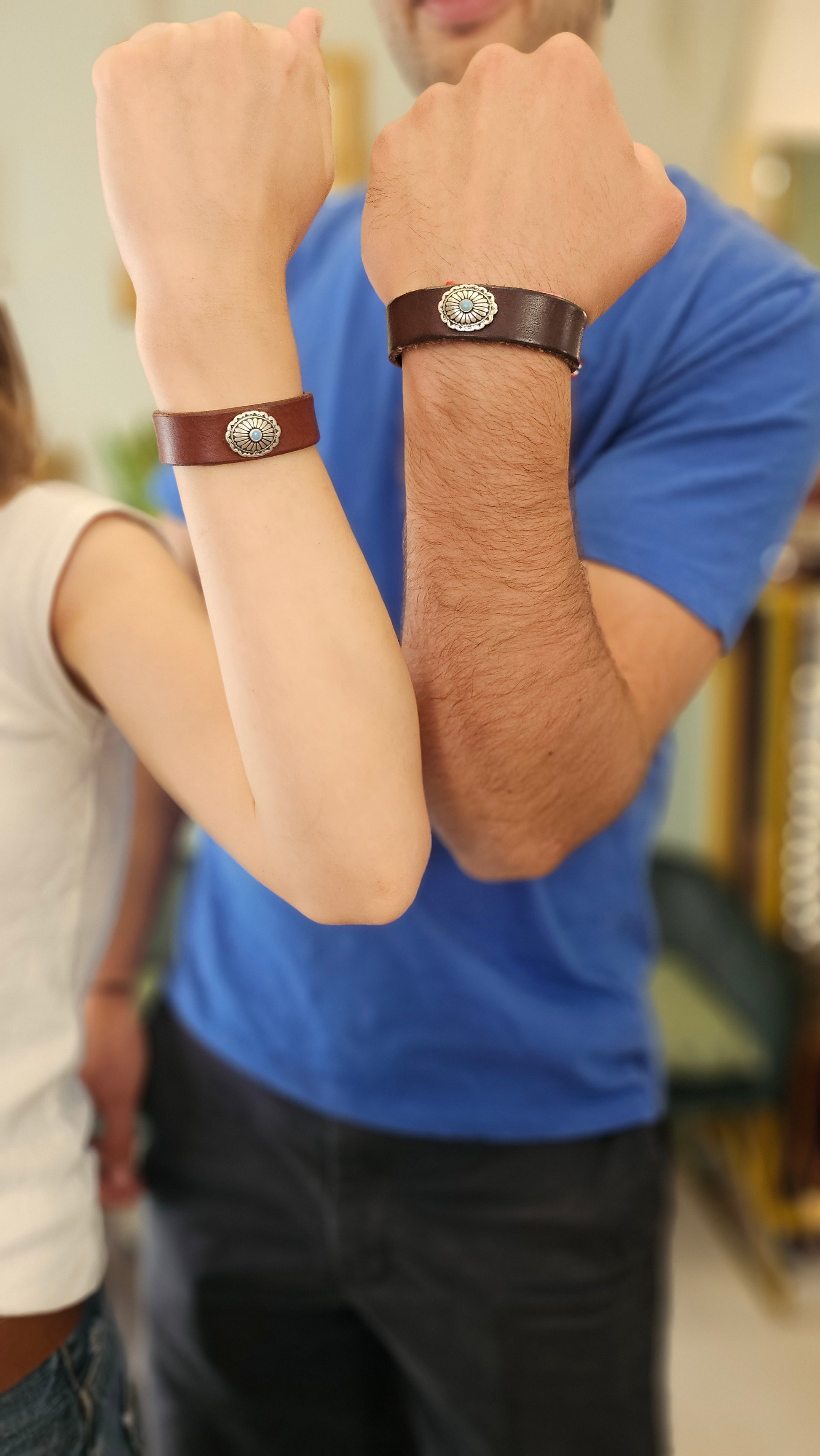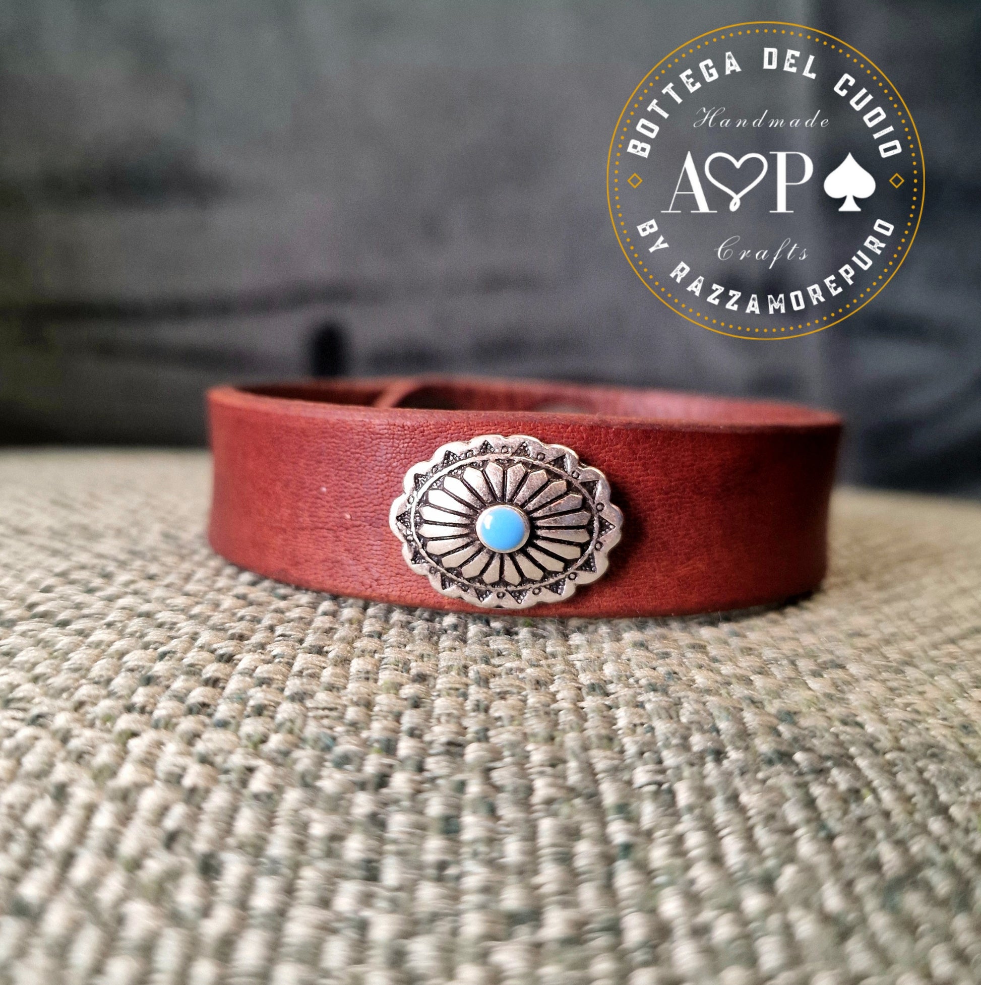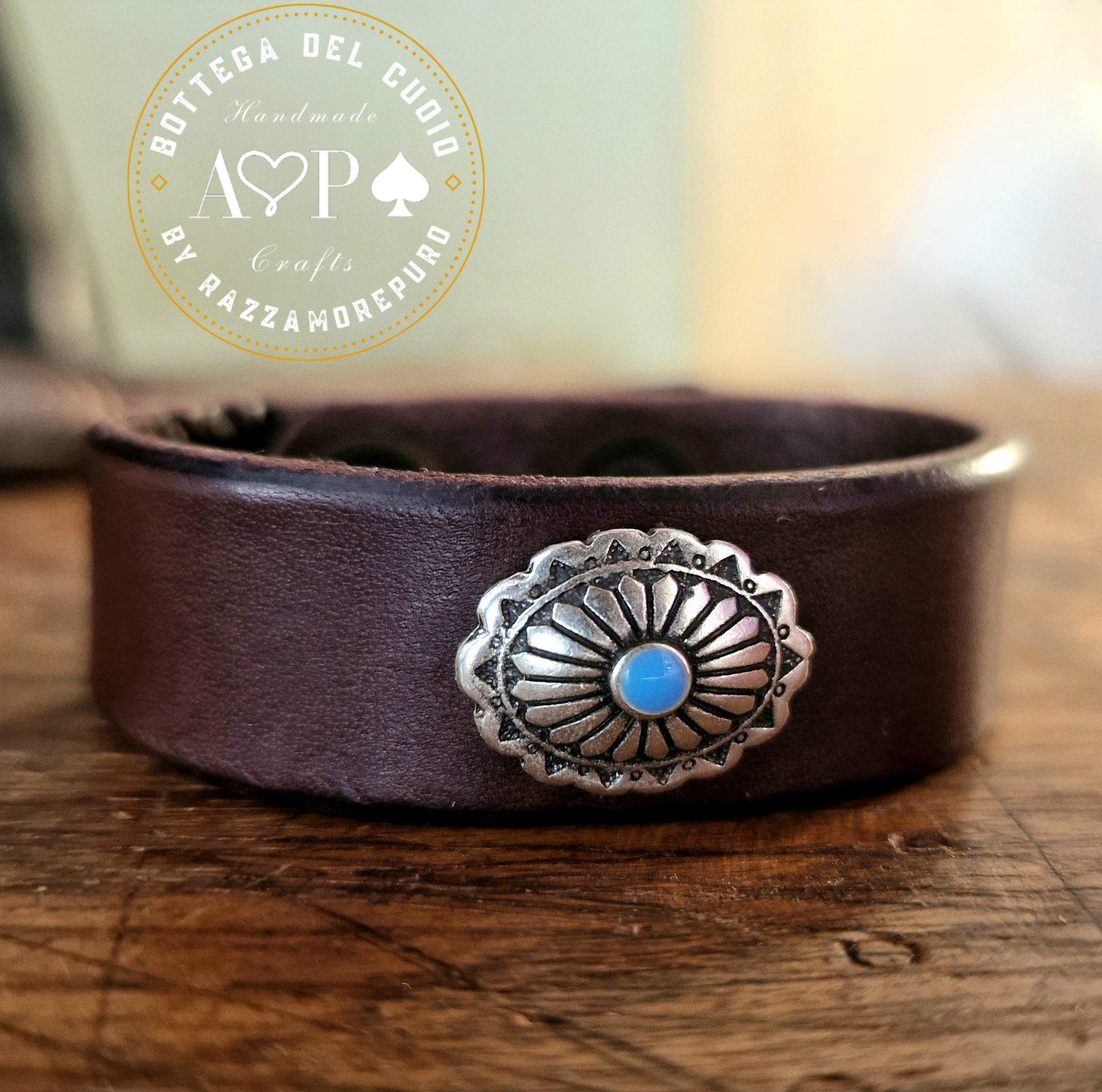 Bracciale in cuoio concia vegetale toscano, ingrassato e lavorato a mano.