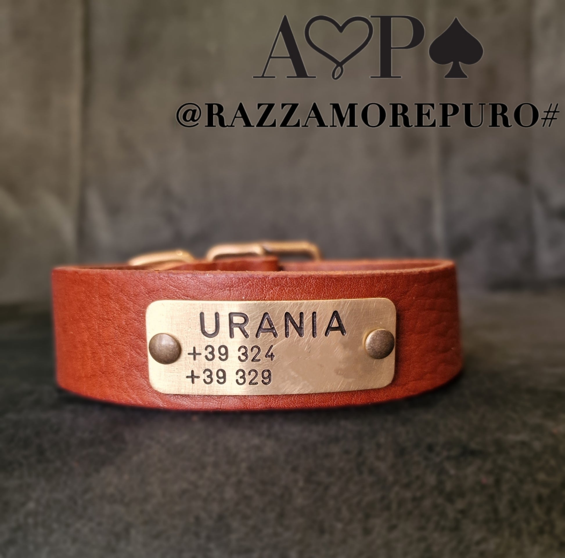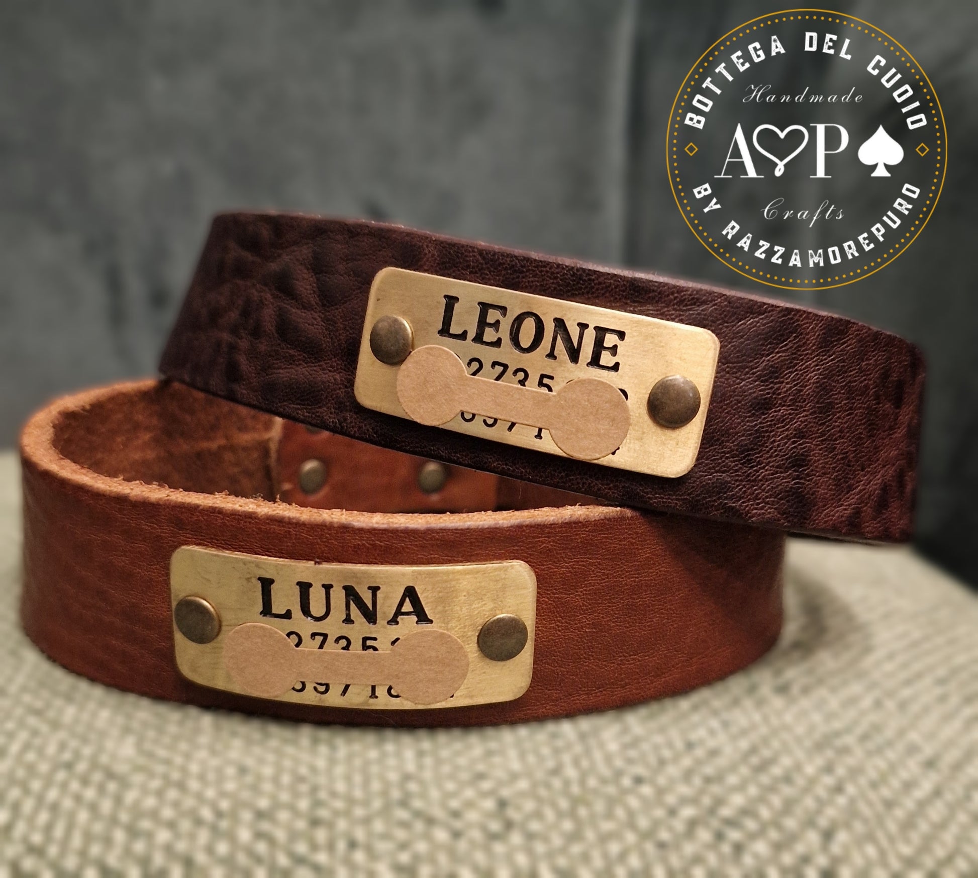 Collare LEPUS con medaglietta di riconoscimento in ottone con nome e numero di telefono inciso (PERSONALIZZABILE PER TUTTE LE TAGLIE)