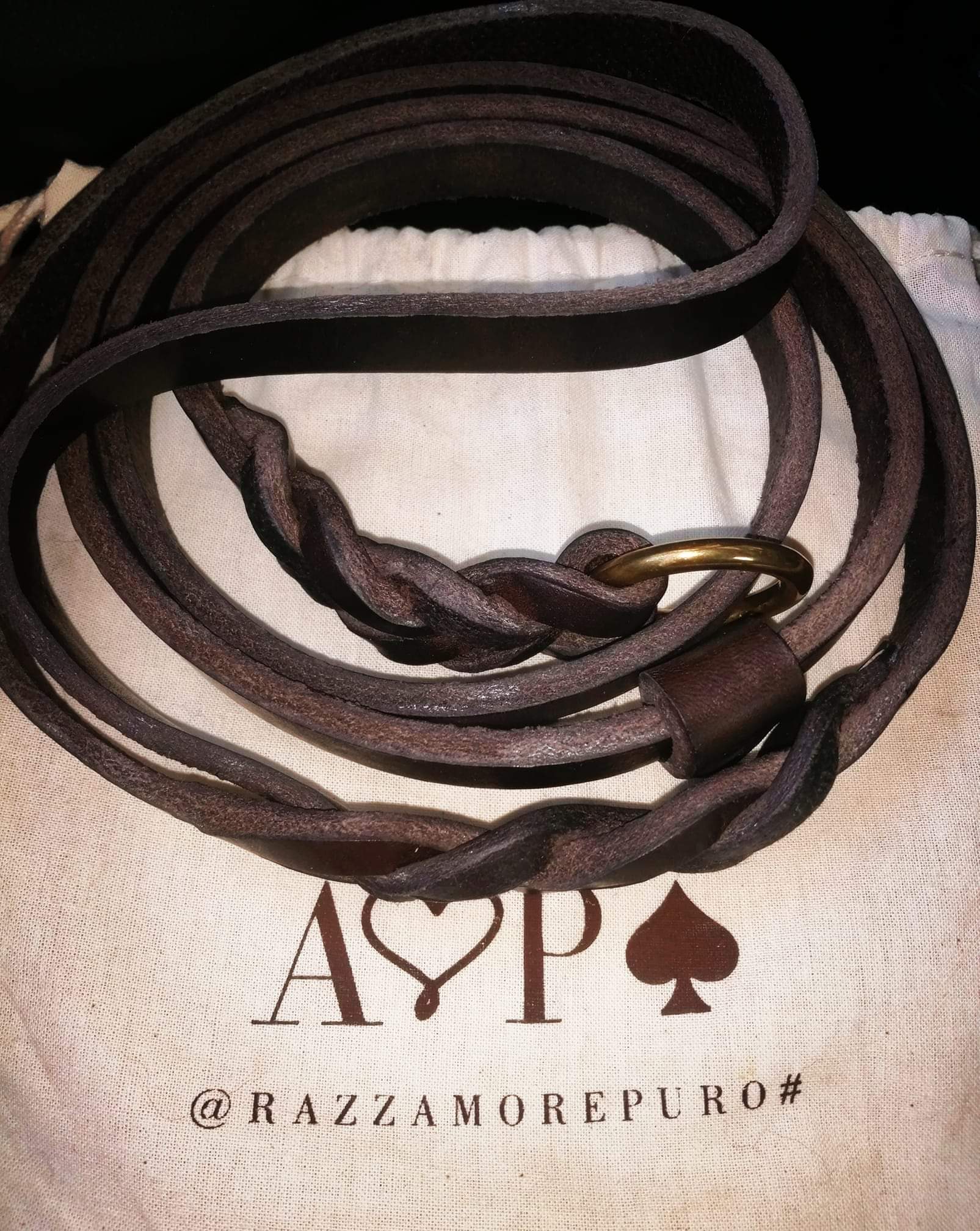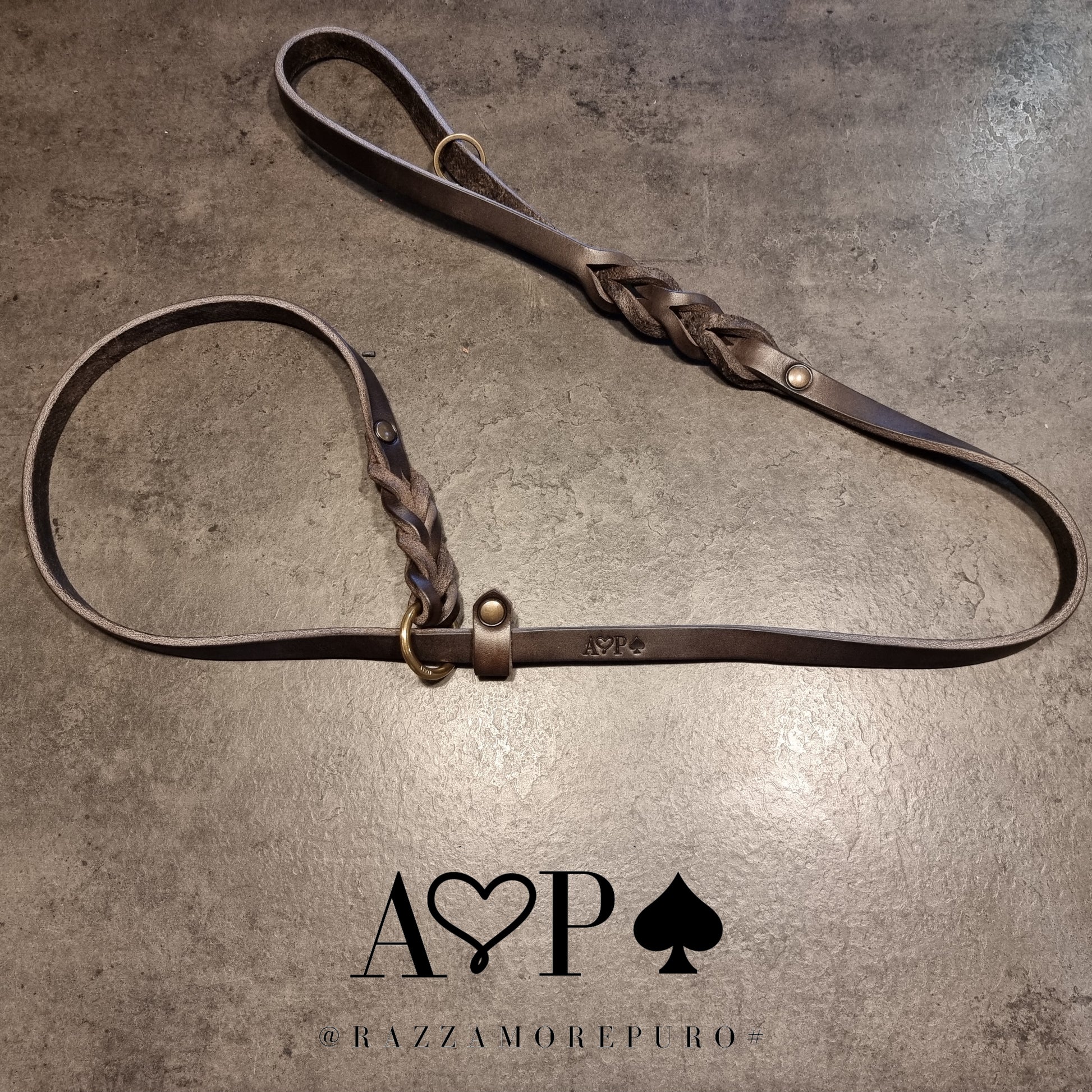 Guinzaglio in cuoio concia vegetale toscano, ingrassato e lavorato a mano.