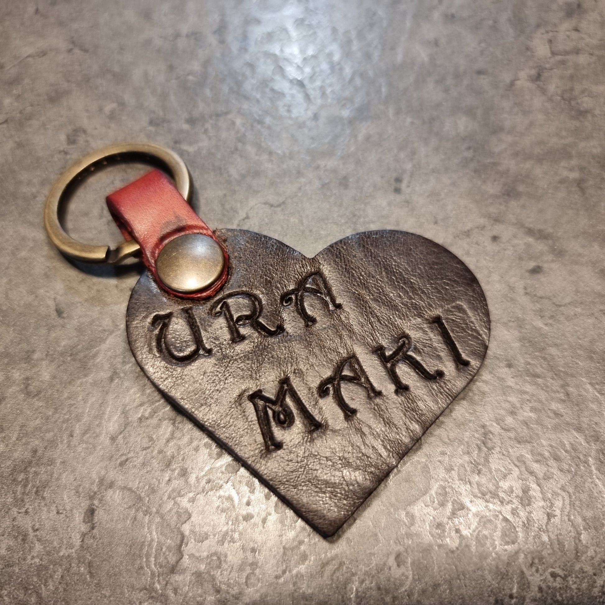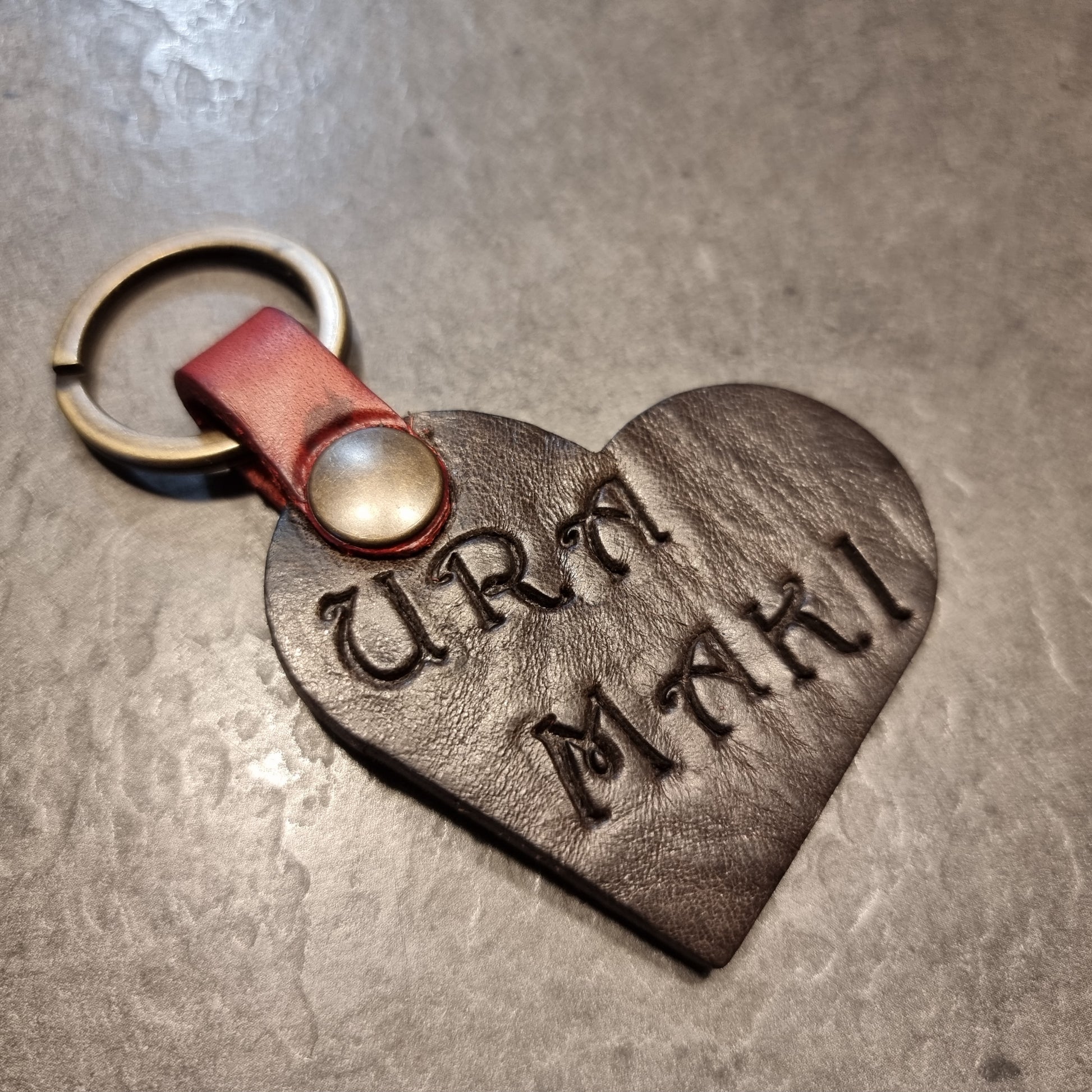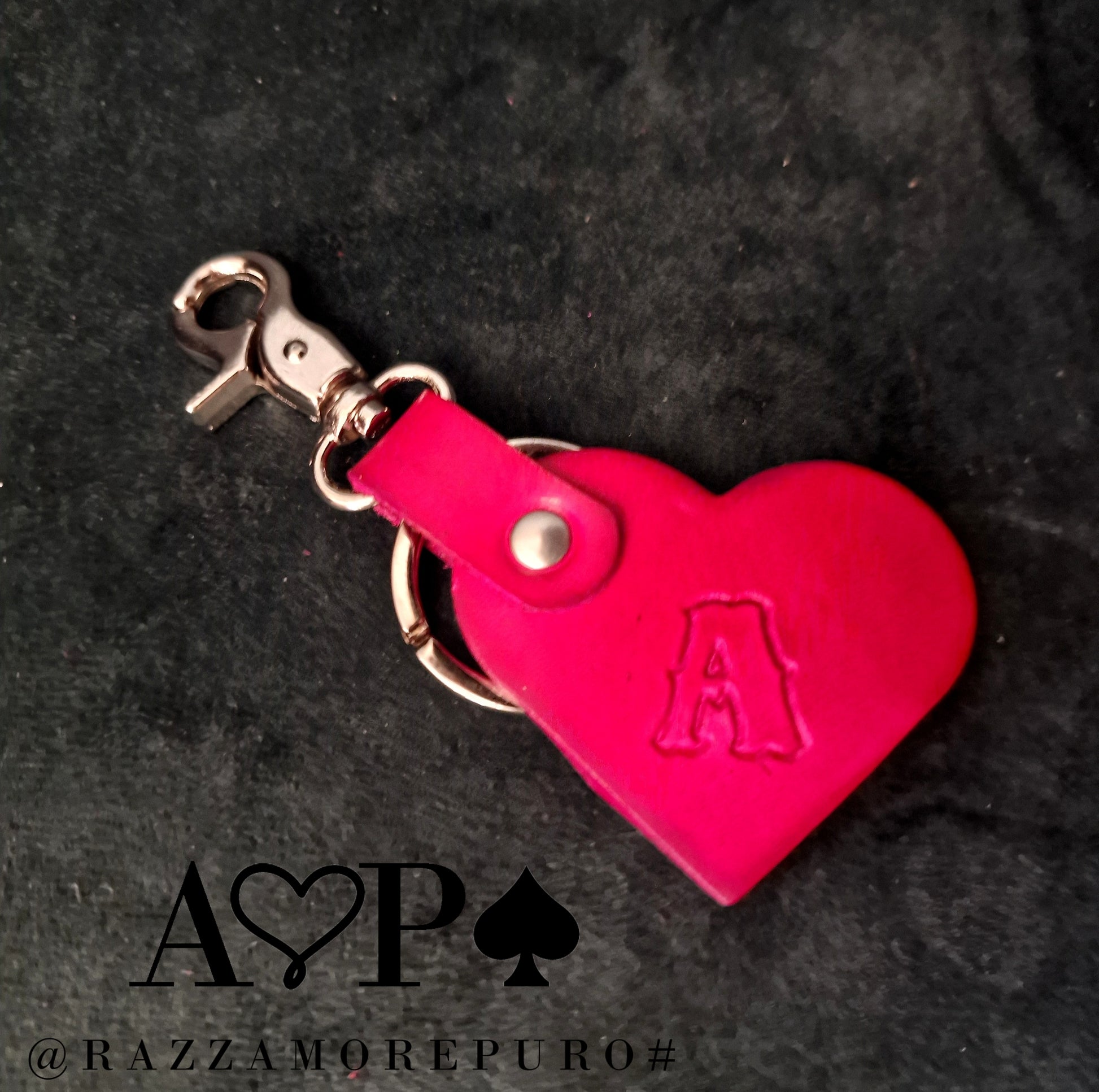 Portachiavi in cuoio con moschettone ed anello. personalizzabile con una parola di max 8 caratteri o 1/2 iniziali grandi